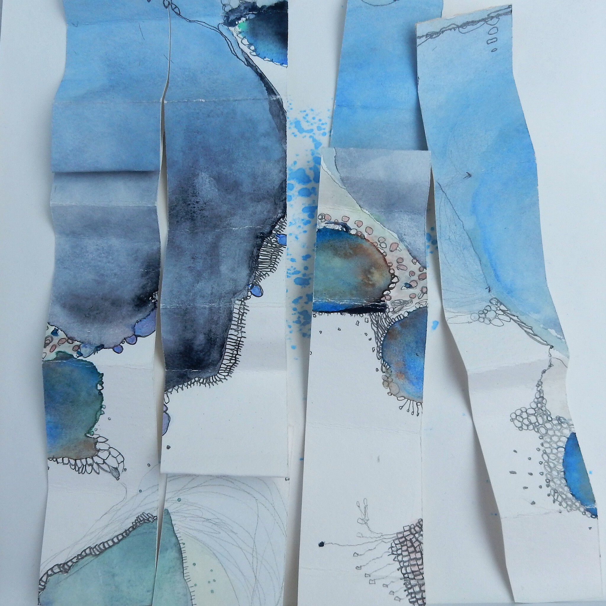 Aquarelverf en potlood op papier. Gevouwen en gesneden. Het zou zomaar anders kunnen worden.