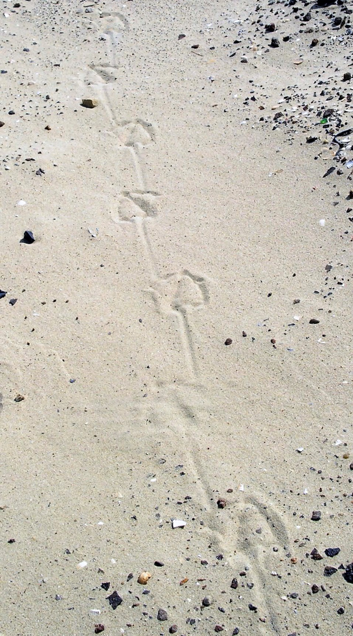 Wandeling langs het strand op Vlieland. Een spoor, van een vogel? Wat is dit? Wie weet het?