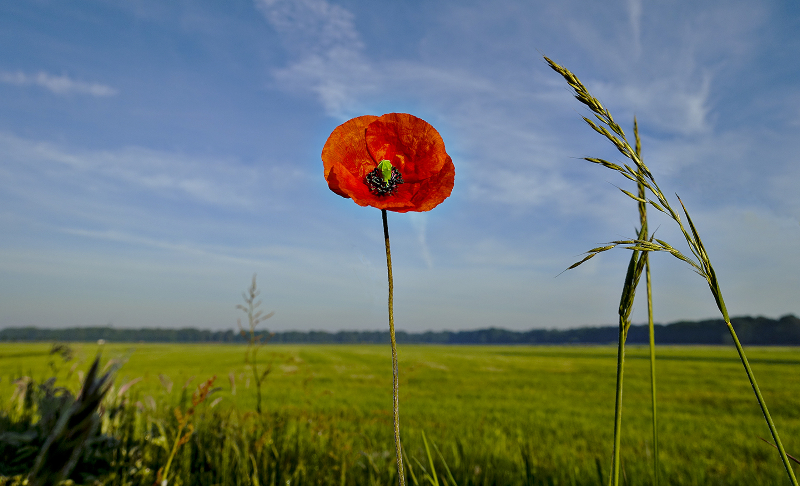 Blue Red Green Nature Spring Poppy
