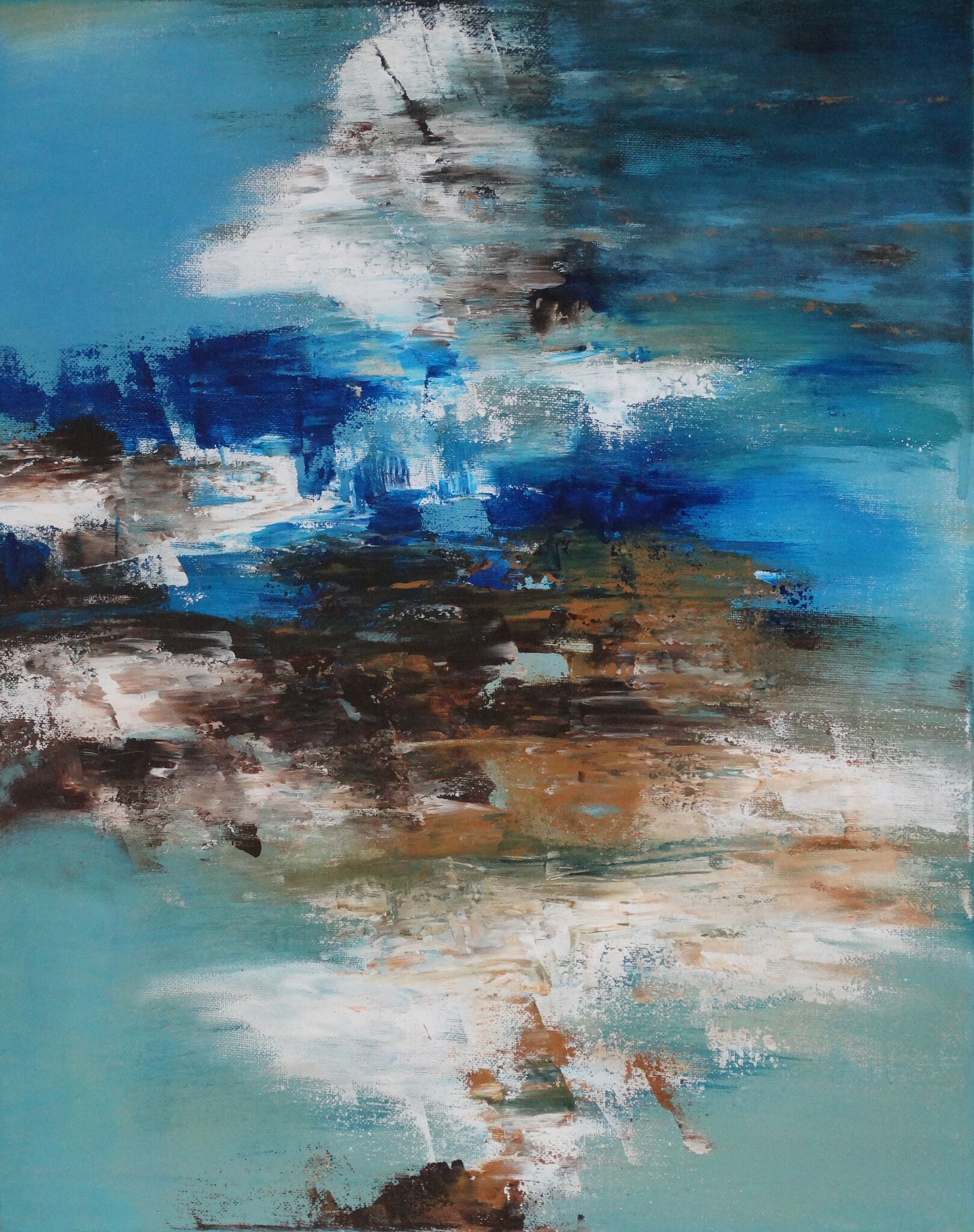 Schilderij Abstract Blauw Acryl Bruin Okergeel Peter Turqoise Kerst Elias