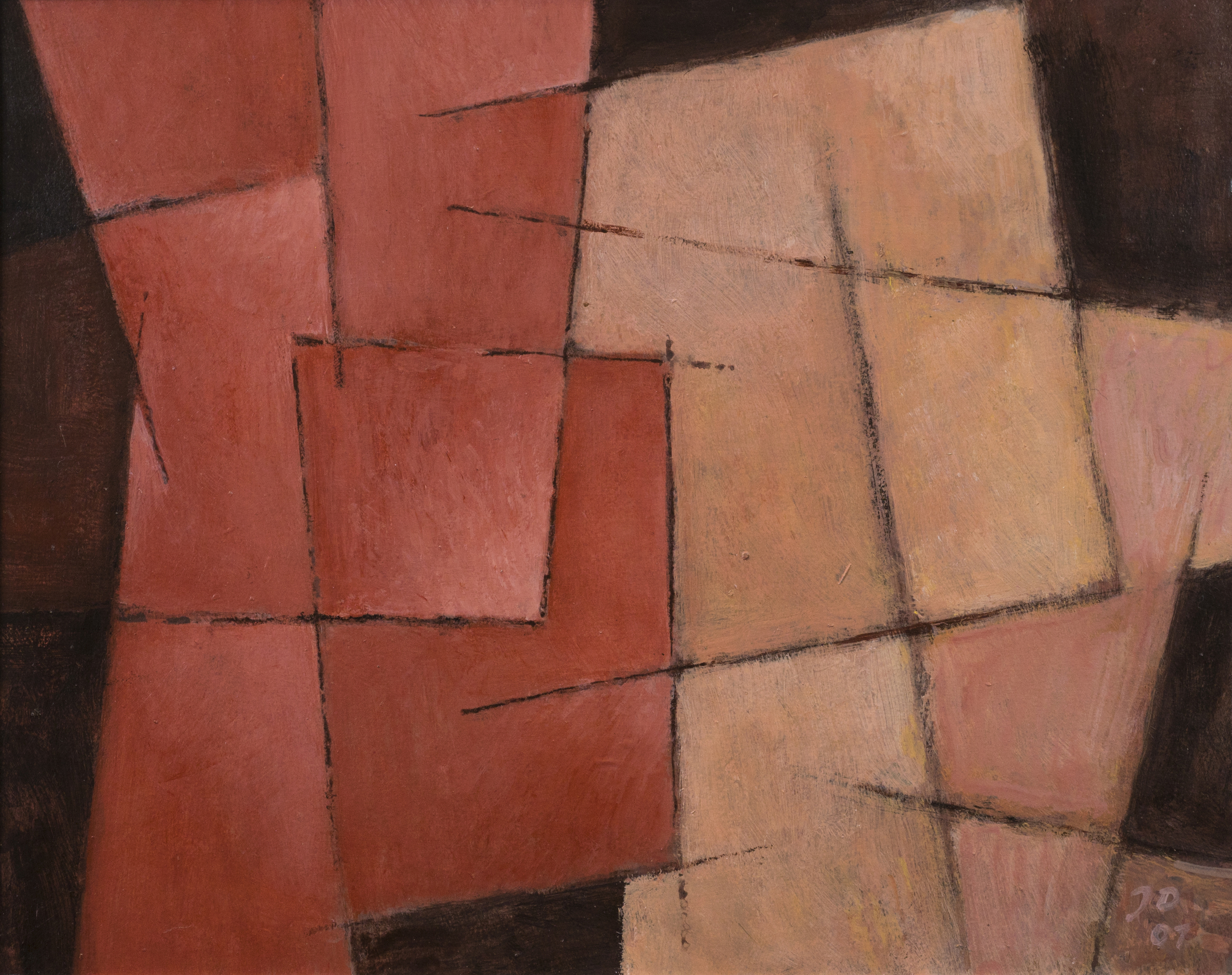 Schilderij Geel Acryl Bruin Papier Abstraherend Kubisme Kubistisch Uitgeest Jandeckwitz Jan-deckwitz