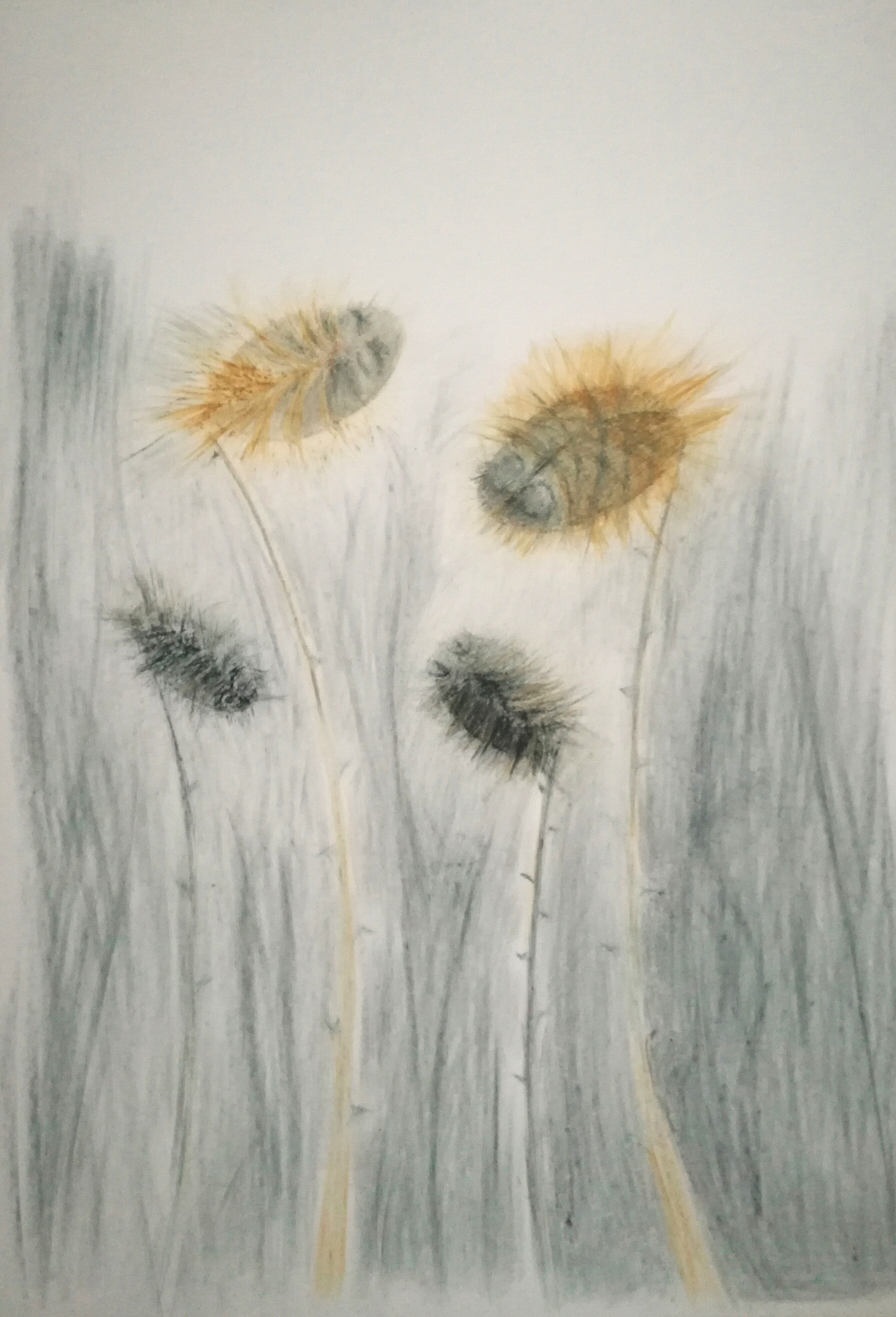 Verpersoonlijking van de sterke plant, die overleeft onder extreme condities door doorns beschermd. De afbeeldingen zijn diffuus en krijgen een sprookjes effect mede door het gebruik van walnootinkt en krijtjes met zachte aarde kleuren.