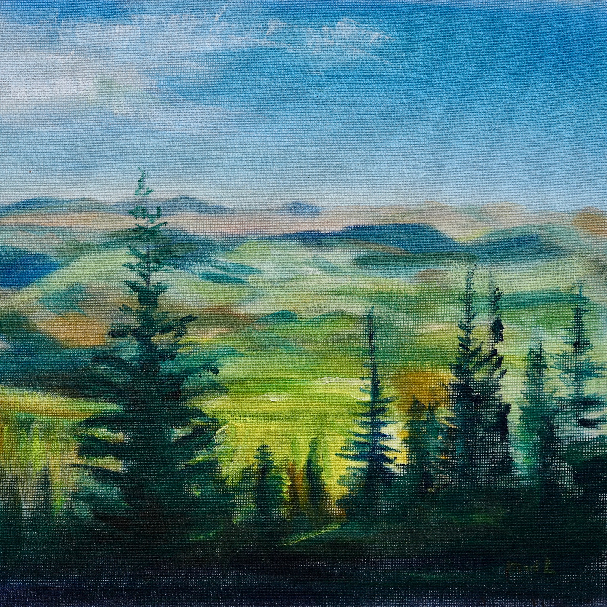 There might be a lot of pines around while walking in the mountains, but when the view opens up there is always so much to see and enjoy rand vey well worth to paint Between every two pines there is a doorway to a new world, John Muir