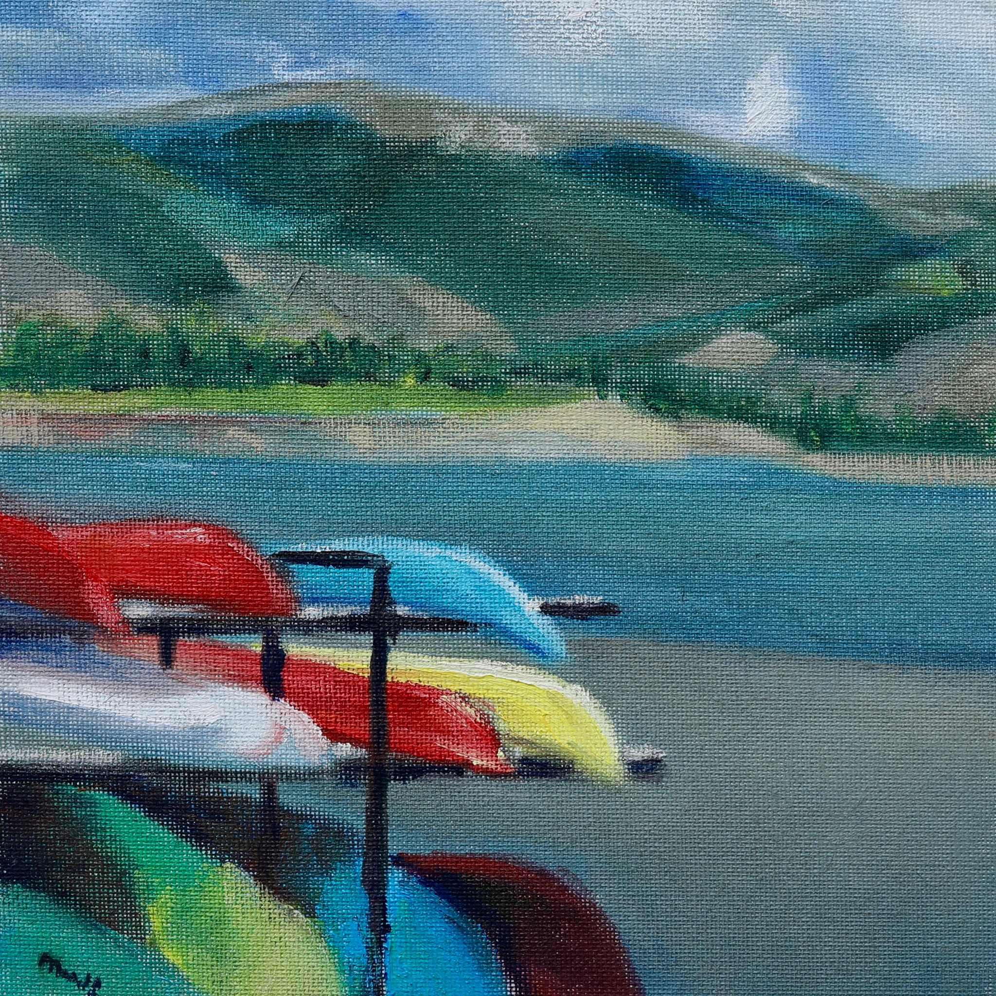 The boats distracted me from the mountains and the lake. I had to paint this haphazardly and at the same time arranged stack of colorful boats Not all classrooms have 4 walls, Unknown