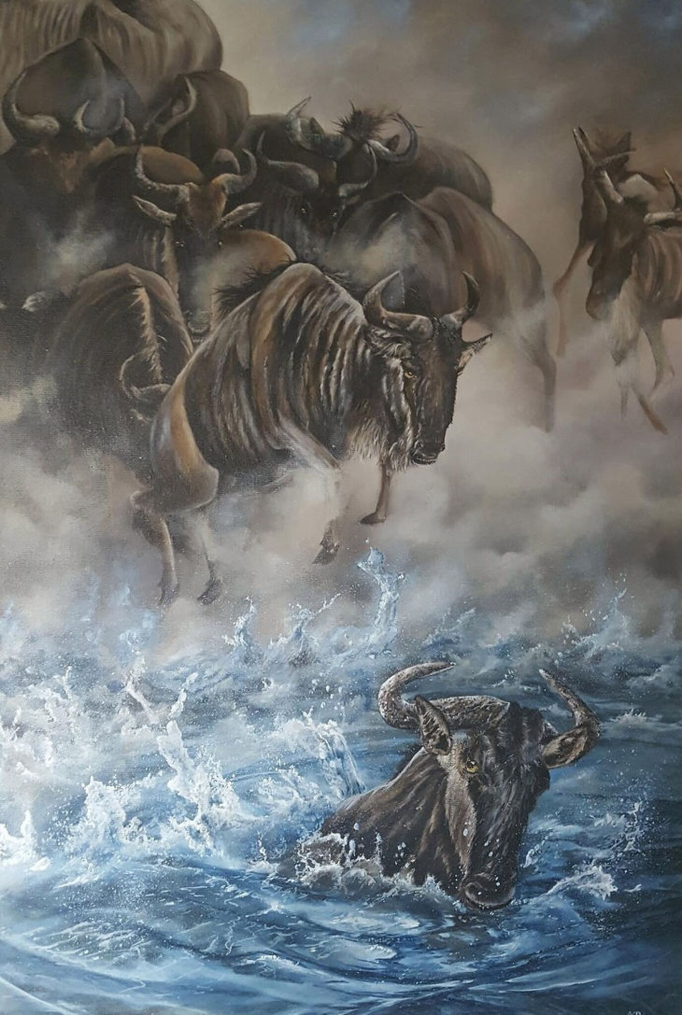 De jaarlijkse emigratie van gnoes in Africa naar de andere kant van het land.