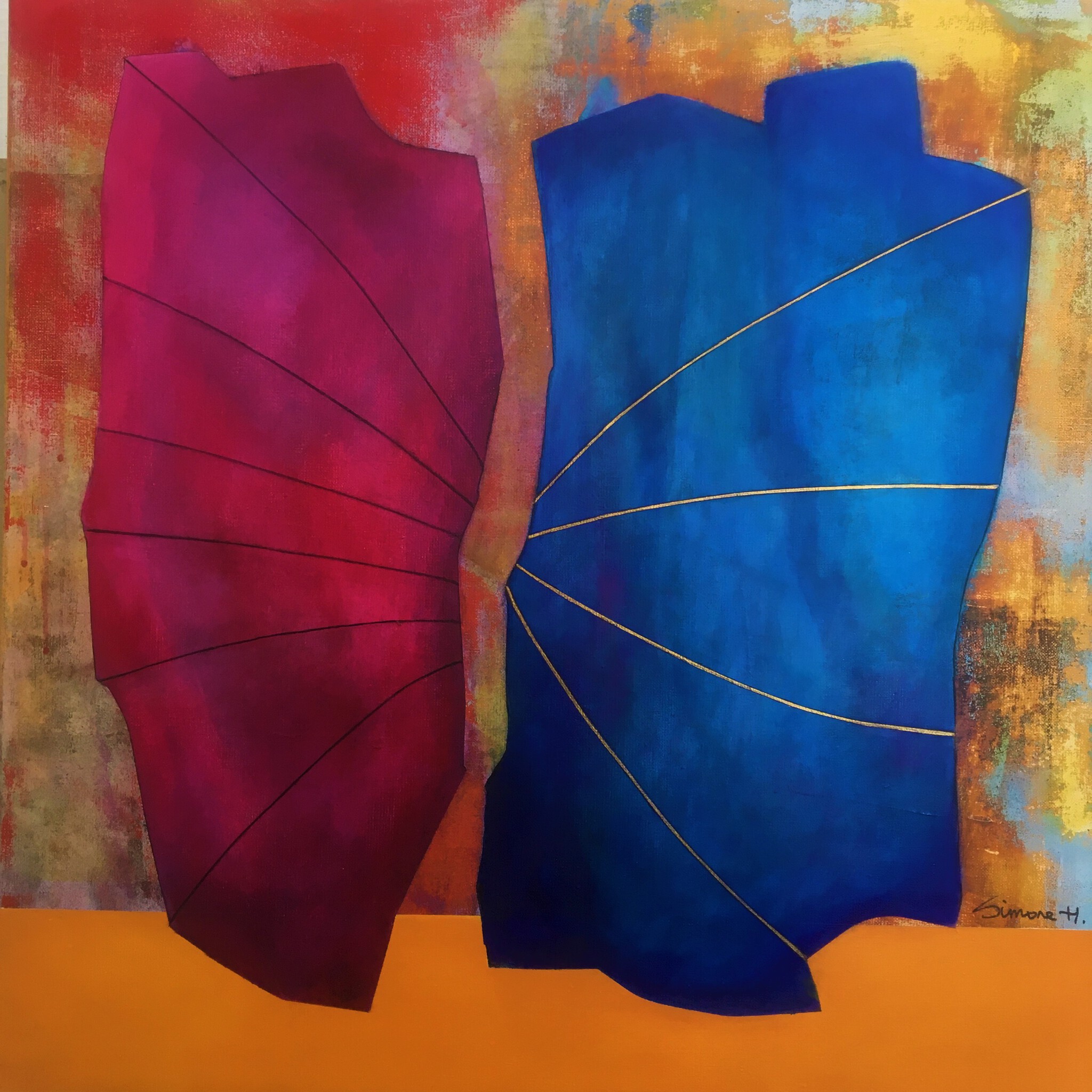 Het werk van Simone is kleurrijk en een combinatie van abstract en figuratief. Haar visie en inspiratie haalt ze uit de natuur die qua kleurstellingen veel te bieden heeft. Zoals de ondergaande zon de wereld betovert met de mooiste kleuren, die zij dan terug wilt zien op het doek. Een schilderij moet voor haar een sterke expressie hebben en die vindt ze in spetterende kleuren waarmee ze kan spelen. Met haar werk probeert ze een sfeer te creëren die haar gevoel weergeeft.