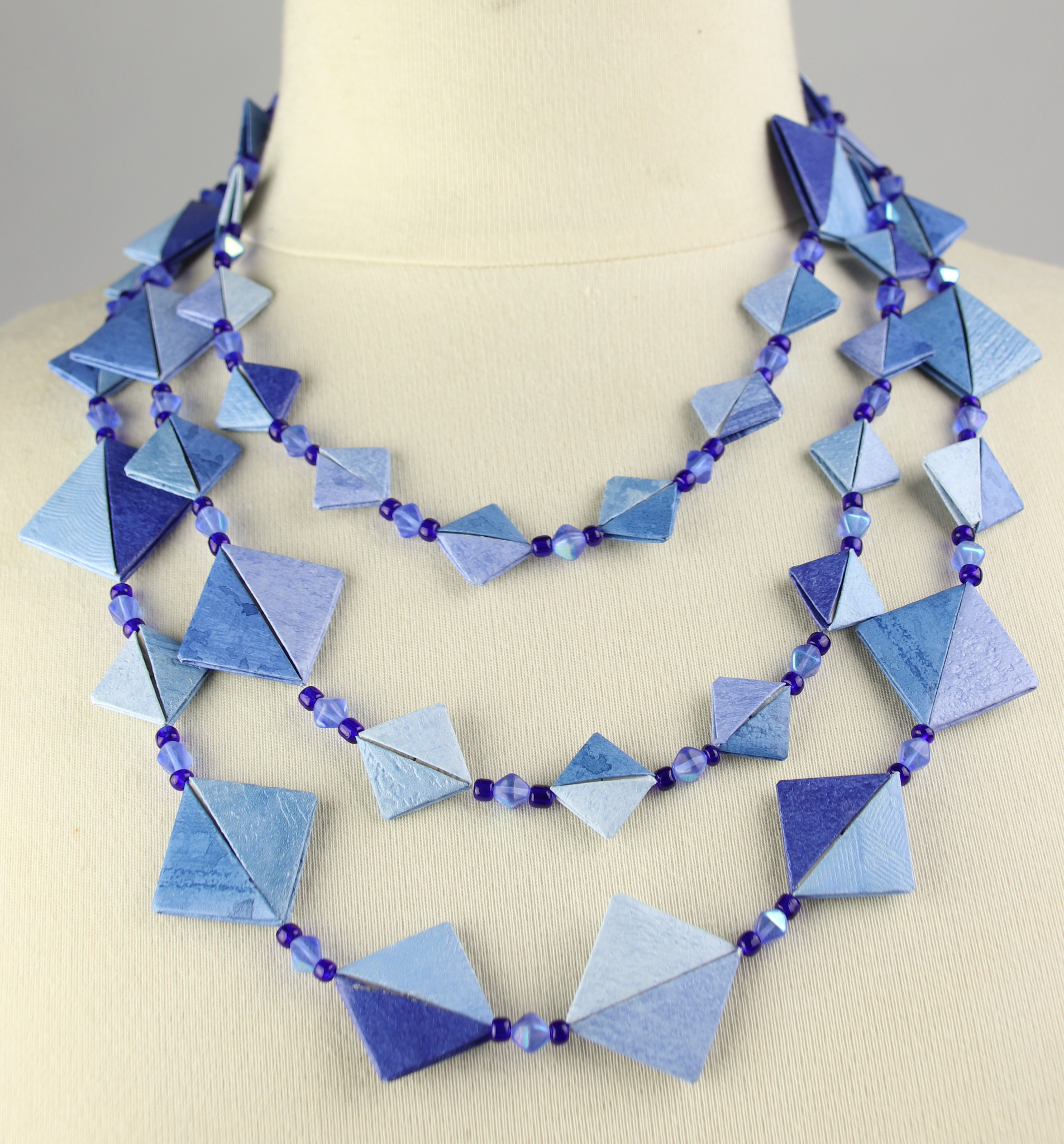 Origami Gevouwen Piramide Parels Blauw Glaskraal Lang Ketting Zomer Vierkant