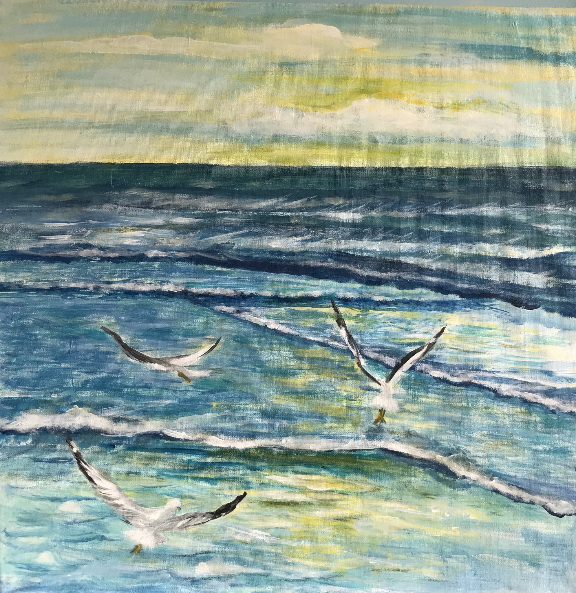 Zee, vogels en wolken