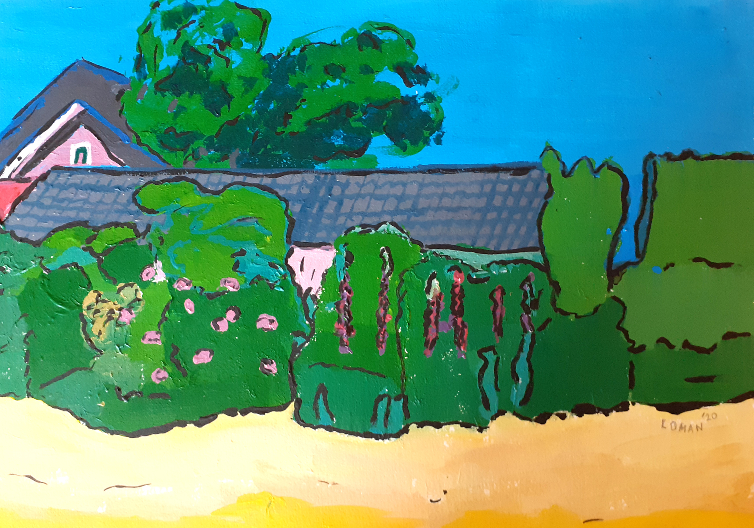 Karel Loman schildert expressief. Zijn landschappen en stads- en dorpsgezichten zet hij in heldere kleuren op papier. De sfeer van het landschap staat bij hem voorop. Loman werkt voornamelijk met temperaverf, aangevuld met inkt of potlood.
