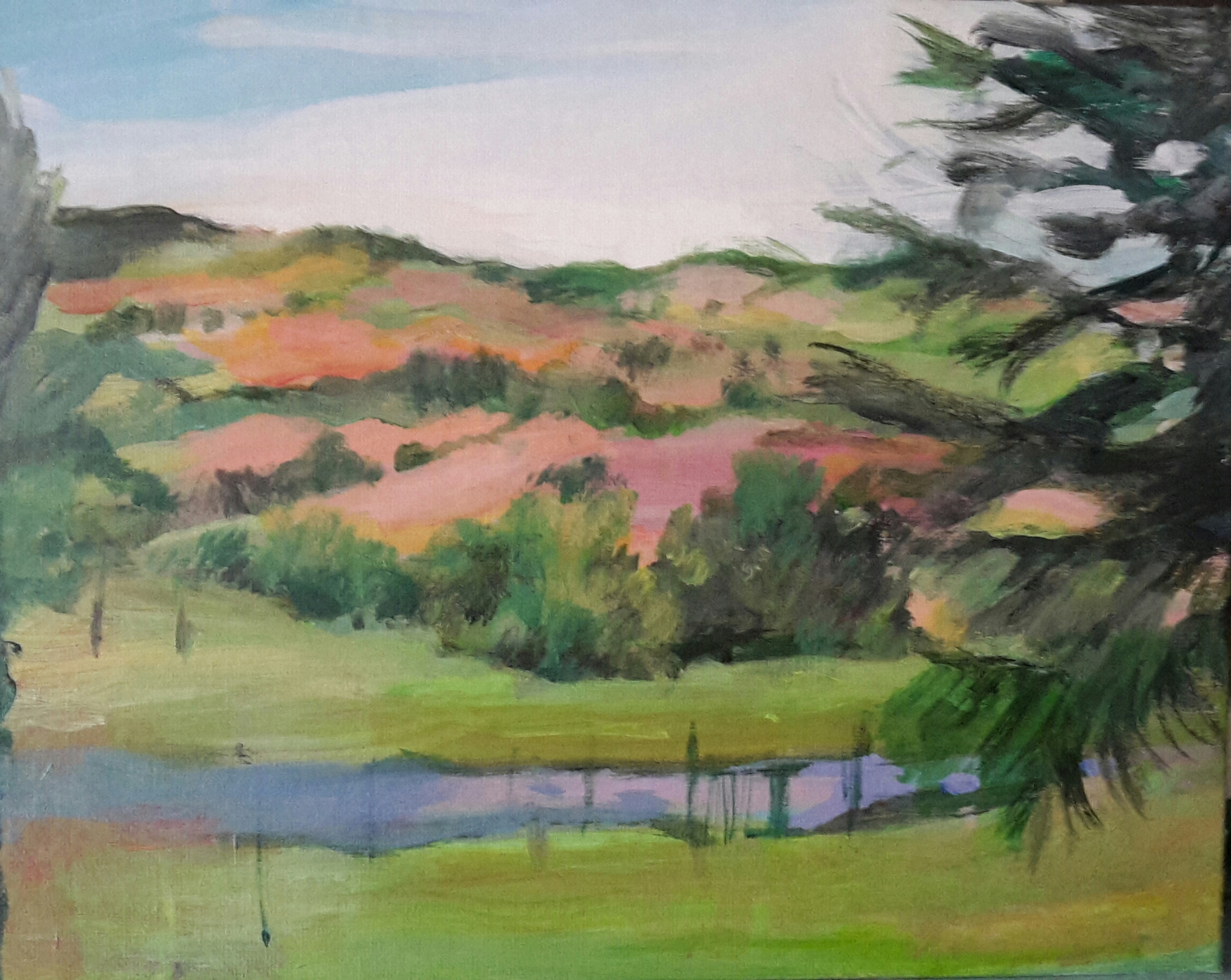 Landschap is mijn toevlucht en inspiratie. Interactie tussen natuur en architectuur is een terugkerend thema in mijn werk. Mijn fascinatie en passie voor landschap vindt zijn oorsprong in mijn achtergrond, en reizen. Eilanden zoals, Tiree, Arran, Harris, The Isle of Man, de Cycladen en de Balearen hebben een diep indruk op mij gemaakt en ook in mijn schilderijen. Felgekleurde luchten, woeste zeeën, mysterieuze heuvels, verlaten stranden, kastelen, kerkjes, megalithische stenen en legenden, vormen een kleurrijk collage aan herinneringen. Tijdens het reizen blijf ik alert op onverwachtse landschappen en weersomstandigheden. Kronen en sieraden zijn kleine relikwieën, die weerspiegelen mijn nostalgie en passie voor mysterieuze oorden.