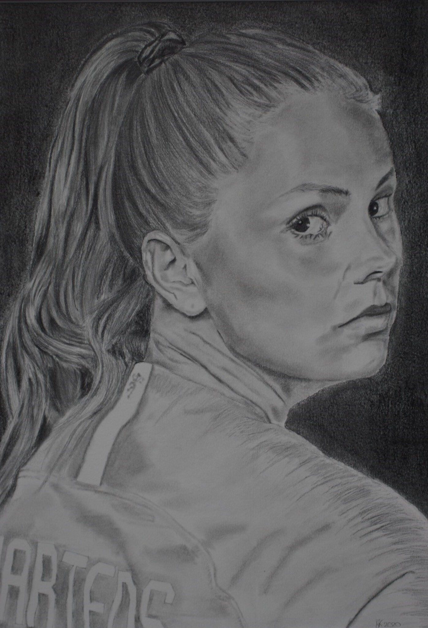 Wit Zwart Portret Potlood Voetbal Lieke Martens