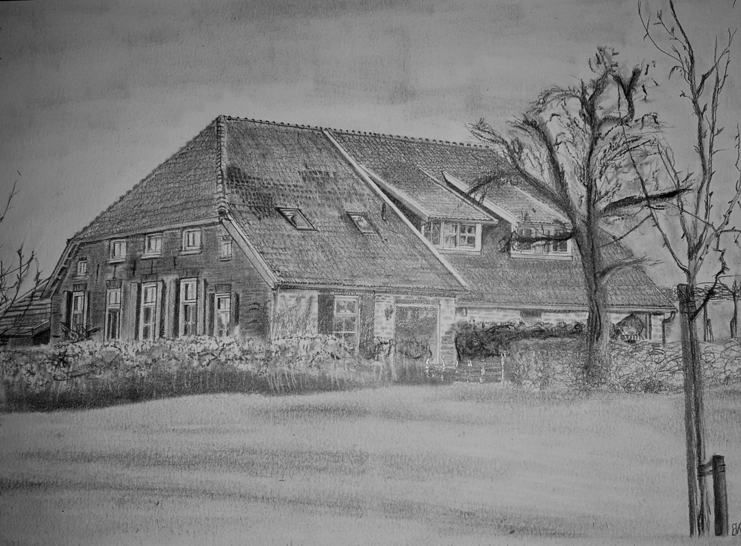 Boerderij te Dinxperlo Potlood en houtskool op A4