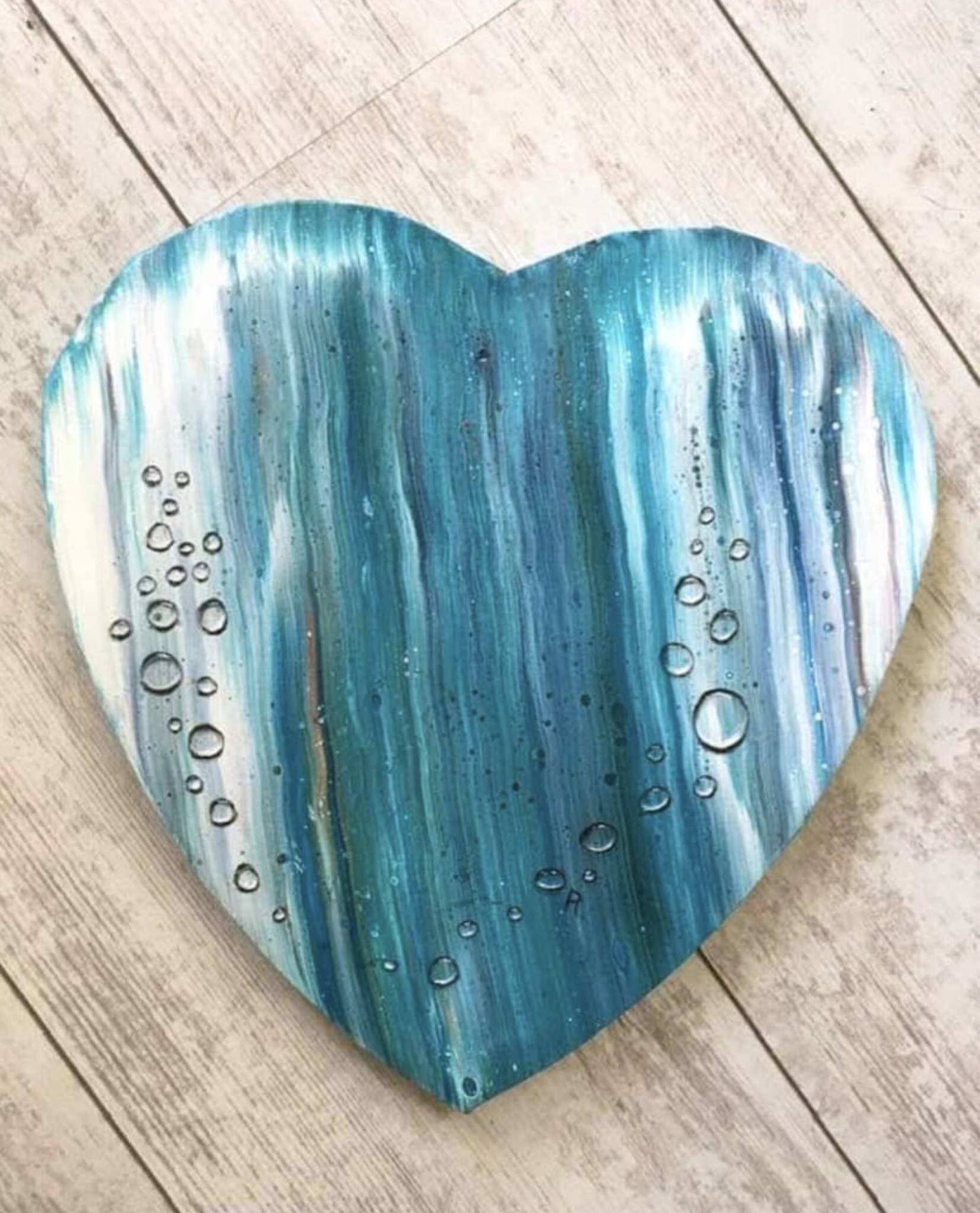 Hart van de liefde met mijn lievelingskleur blauw. *Dit schilderij is met acrylverf en penseel opgebracht. *De zijkanten zijn meegeschilderd. * Vernislaag is aangebracht mat/glans. *De canvas heeft een hout frame met spies opgespannen. *Het schilderij is gesigneerd op de achterkant met de eerste letters van mijn voor en achternaam (RP) Renate Peters en met de datum dat het schilderij is gecreëerd. Aan de voorkant is er de letter R (van Renate) te vinden rechts onderin.