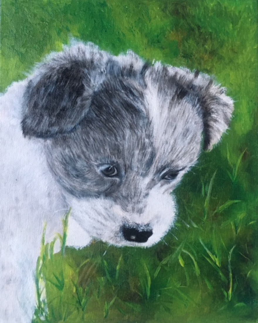 mijn eigen hond *Dit schilderij is met acrylverf en penseel opgebracht. *De zijkanten zijn meegeschilderd. * Vernislaag is aangebracht mat/glans. *De canvas heeft een hout frame met spies opgespannen. *Het schilderij is gesigneerd op de achterkant met de eerste letters van mijn voor en achternaam (RP) Renate Peters en met de datum dat het schilderij is gecreëerd. Aan de voorkant is er de letter R (van Renate) te vinden rechts onderin.