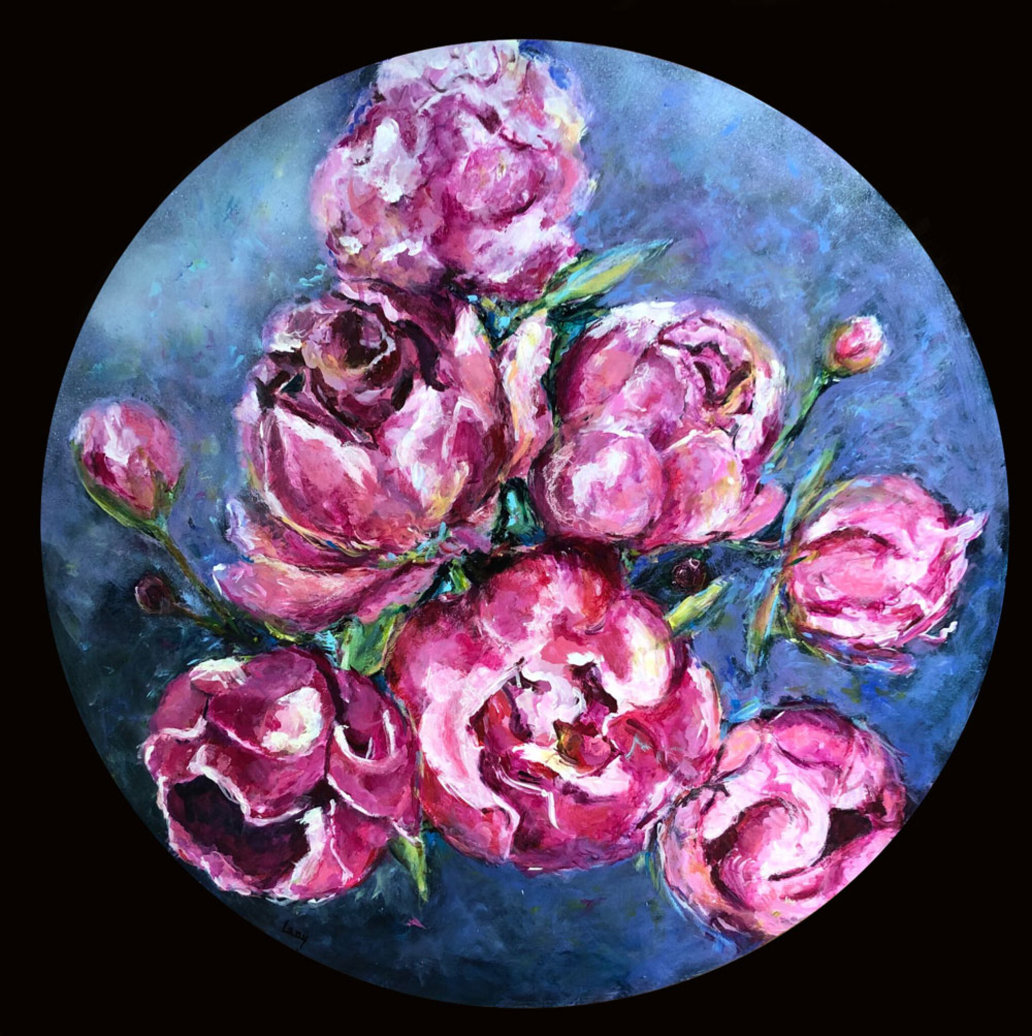 Flowers 3 acryl mixed media op paneel, overgoten met kunsthars