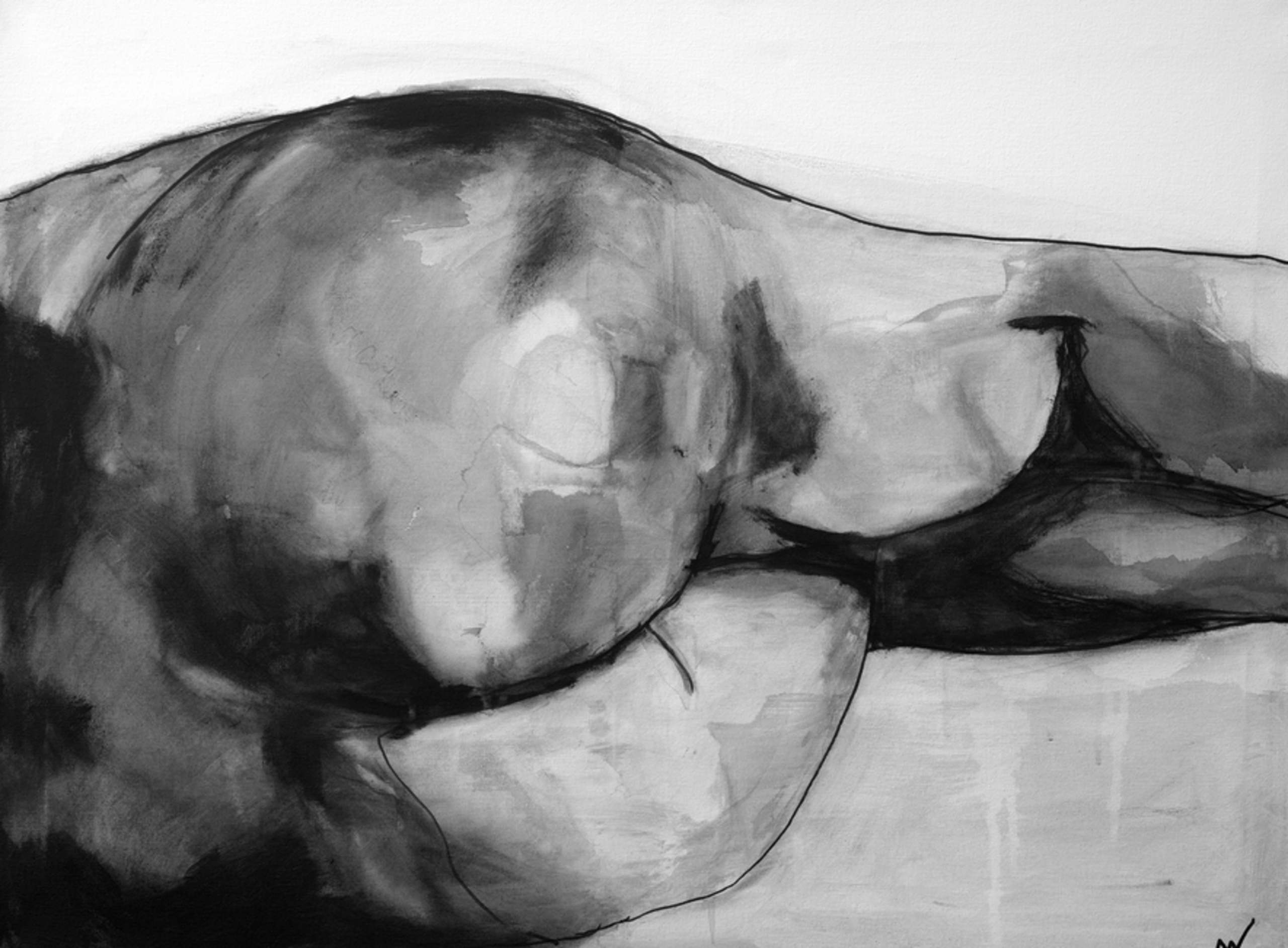Wit Grijs Zwart Vrouw Naakt Billen Liggend