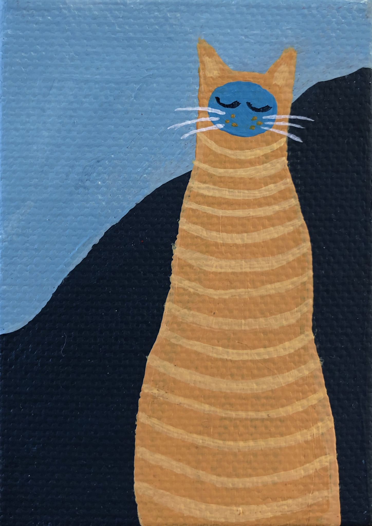 Geel Blauw Dier Kat Nacht Poes Kater Streepjes Minischilderij