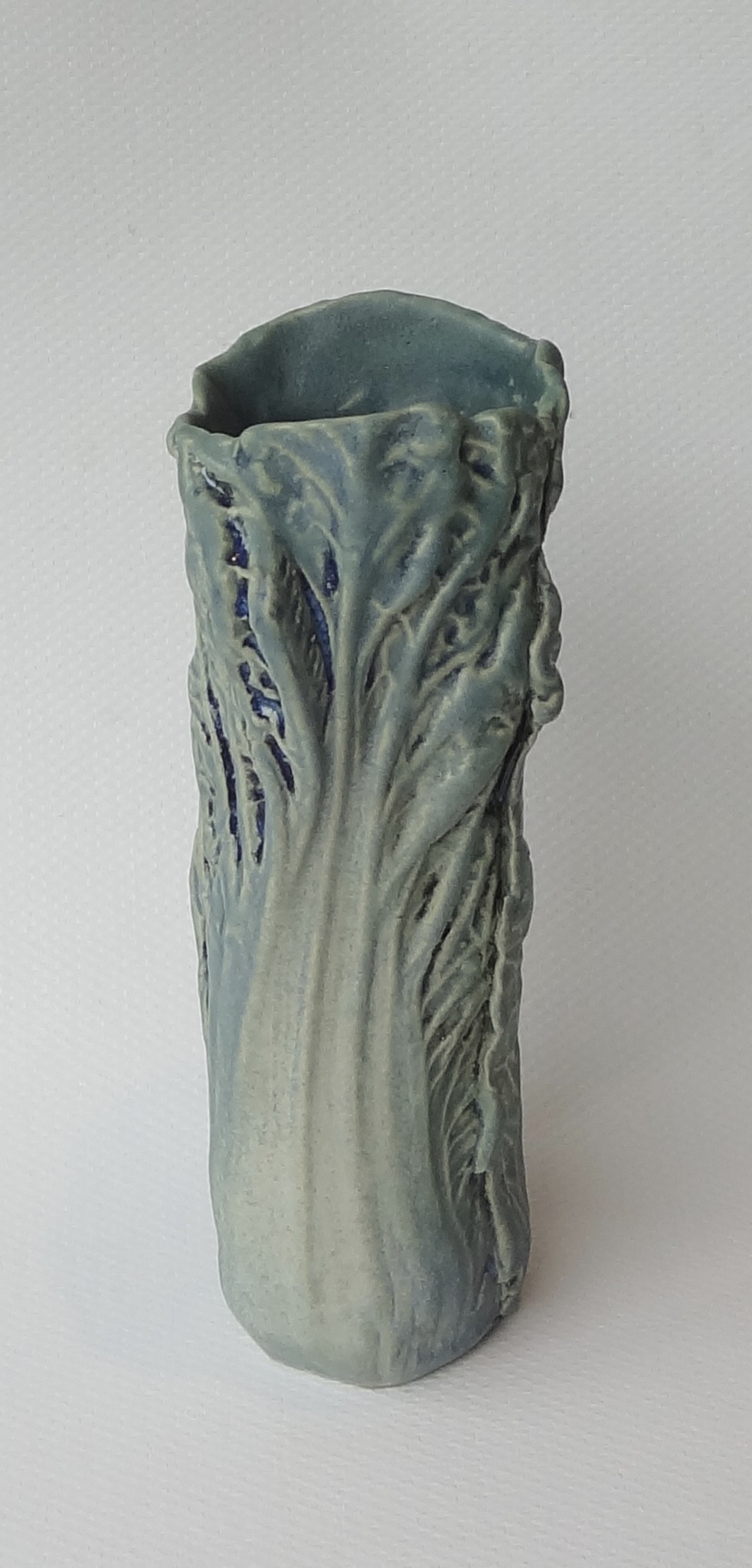 Een vaas gemaakt van het blad van de Chinese kool. Niet echt gietwerk, het is meer een compositie, maar ik maak deze vaas wel in serie en gebruik mallen van het blad.