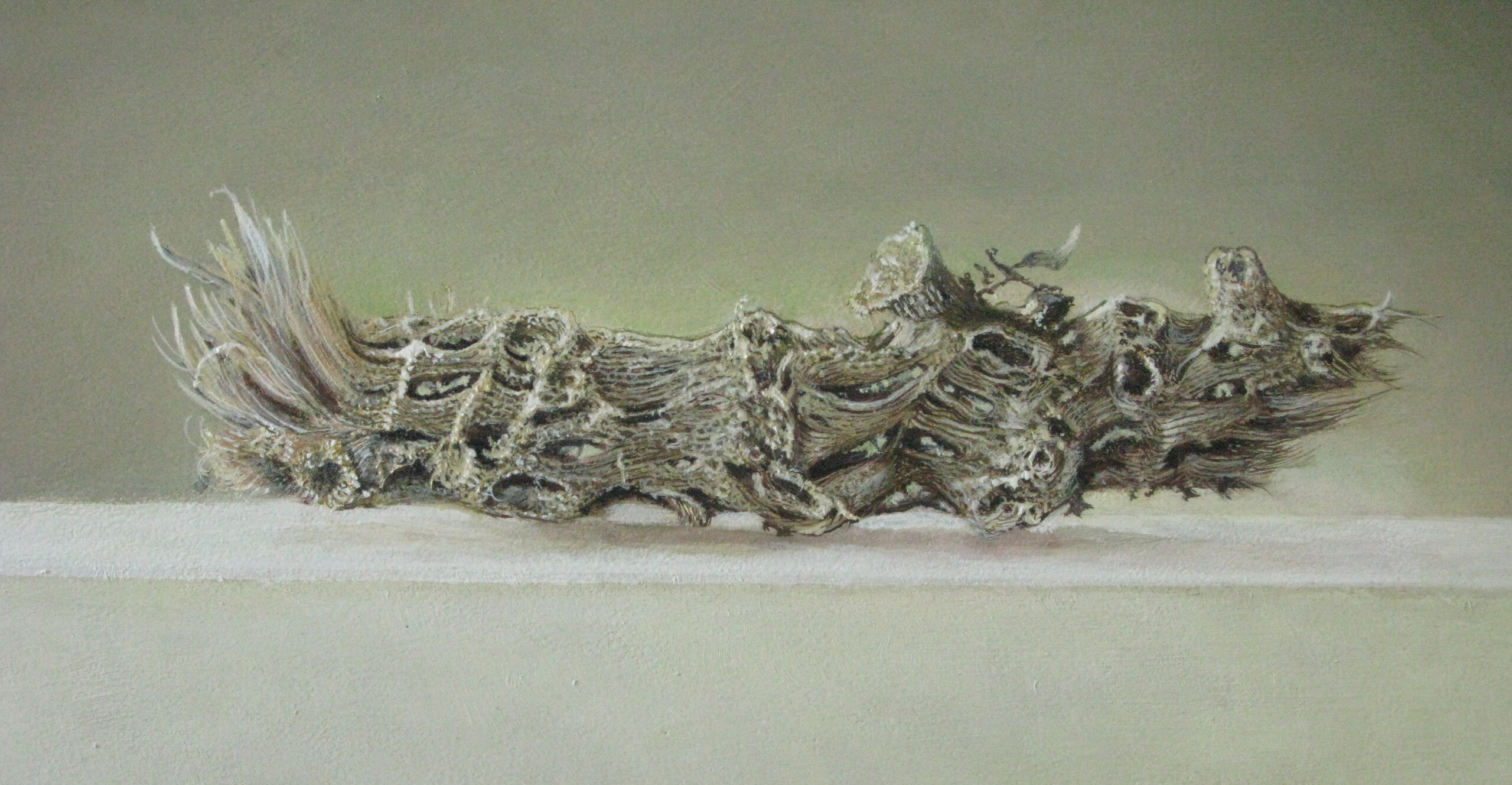 Een verweerde steel van een spruitkool , gevonden op mijn land na de winter!