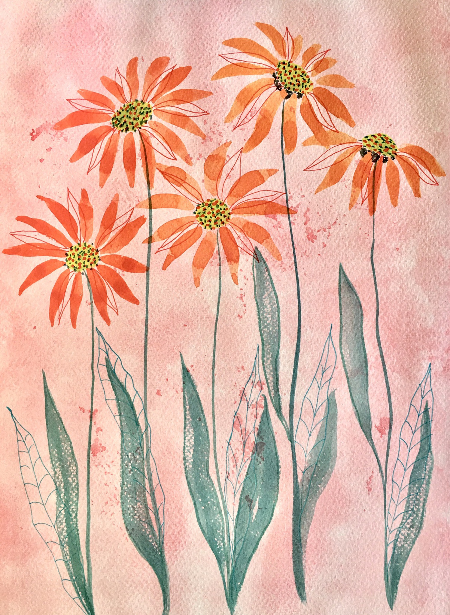 Aquarel en stabilo pen. Juli 2020