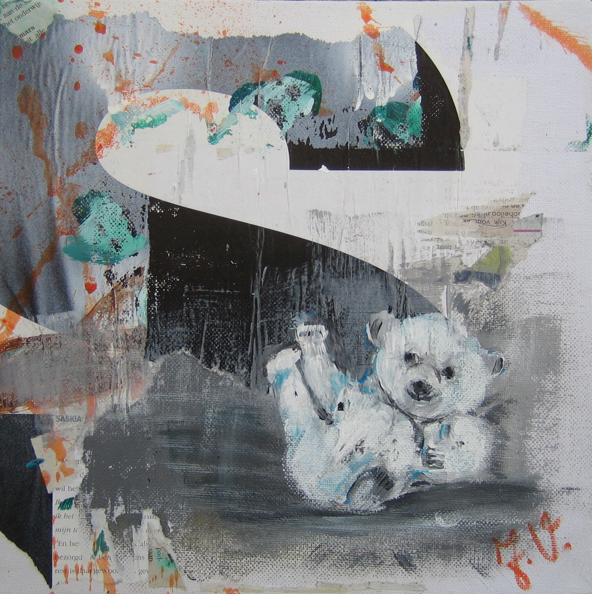 Schilderij Beer Mixed Media Kunst Painting Grafisch Streetart
