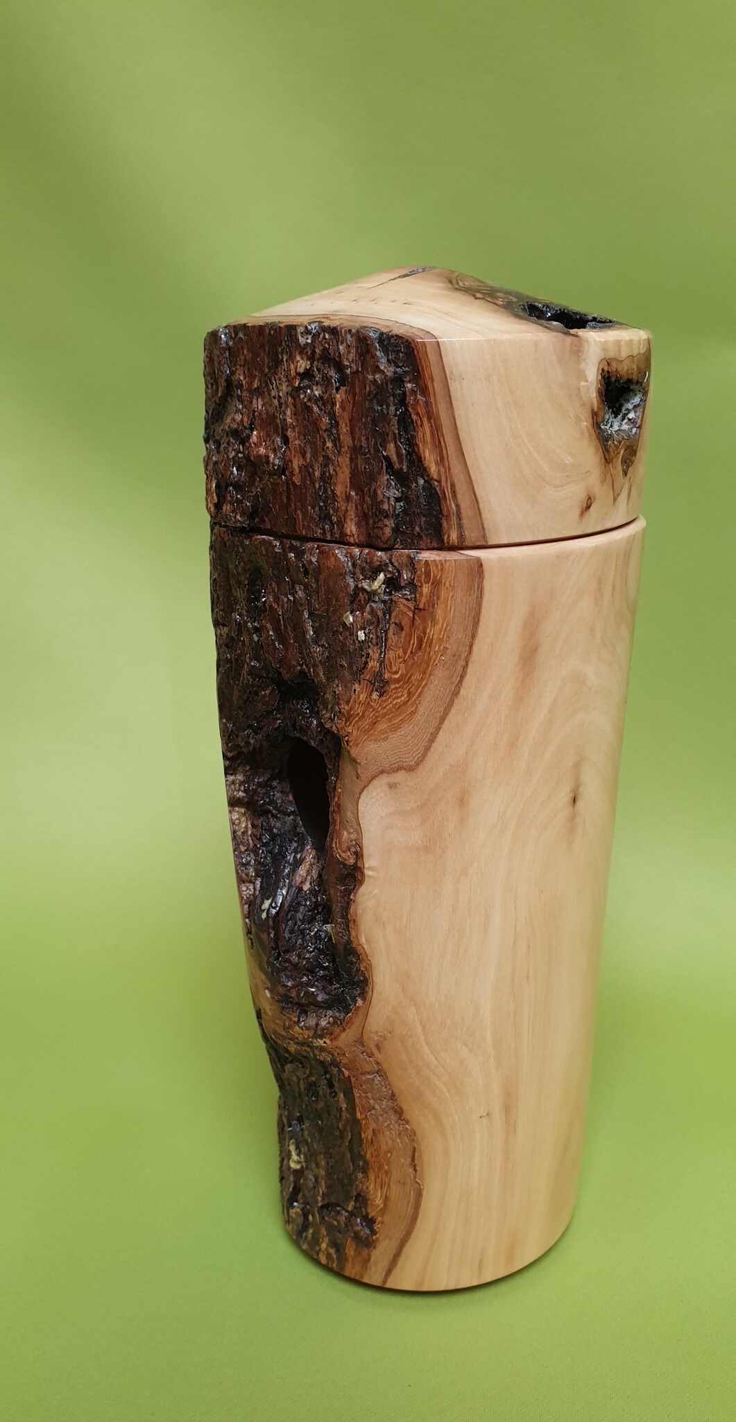Olijfhout uit Portugal. Het ligt al een paar jaar en is droog. Dat maakt het niet makkelijker om te bewerken. Het hout heeft een dichte structuur. Prachtig om te draaien, maar het heeft veel aandacht nodig. Mijn beitels moeten messcherp zijn, dus ben ik tussendoor veel aan het slijpen.