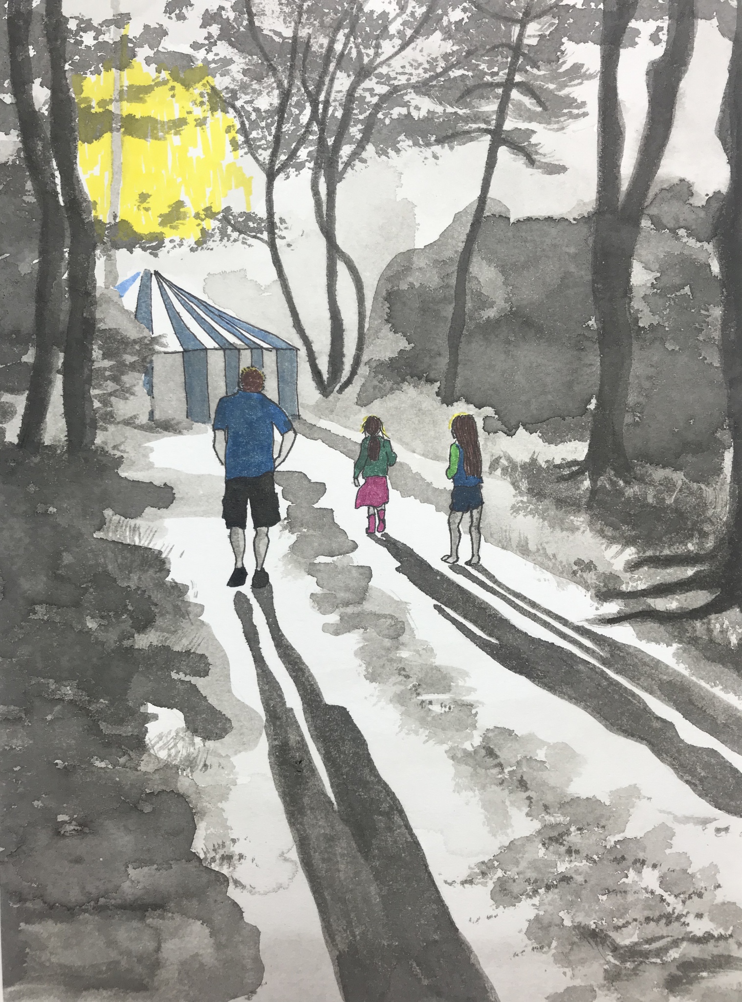 Tekening Natuur Bomen Inkt Schaduw Circustent