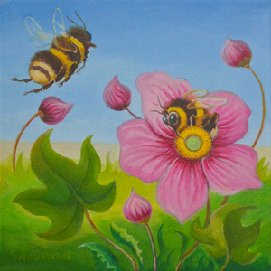Hommels, vlinders, portretten, uitbundig bloeiende bloemen en levenslust zijn bij mij terugkerende thema’s. Soms overheerst de sereniteit, terwijl andere werken een dynamische indruk achterlaten. De boodschap die ik tracht uit te dragen is: vier het leven! De bloemen en insecten zijn rijkelijk aanwezig in mijn eigen tuin en directe omgeving. Zo zijn er meertjes, graslanden en zelfs een klein bos dichtbij. Al deze schoonheid vraagt om aandacht en verdiend het om geschilderd te worden.