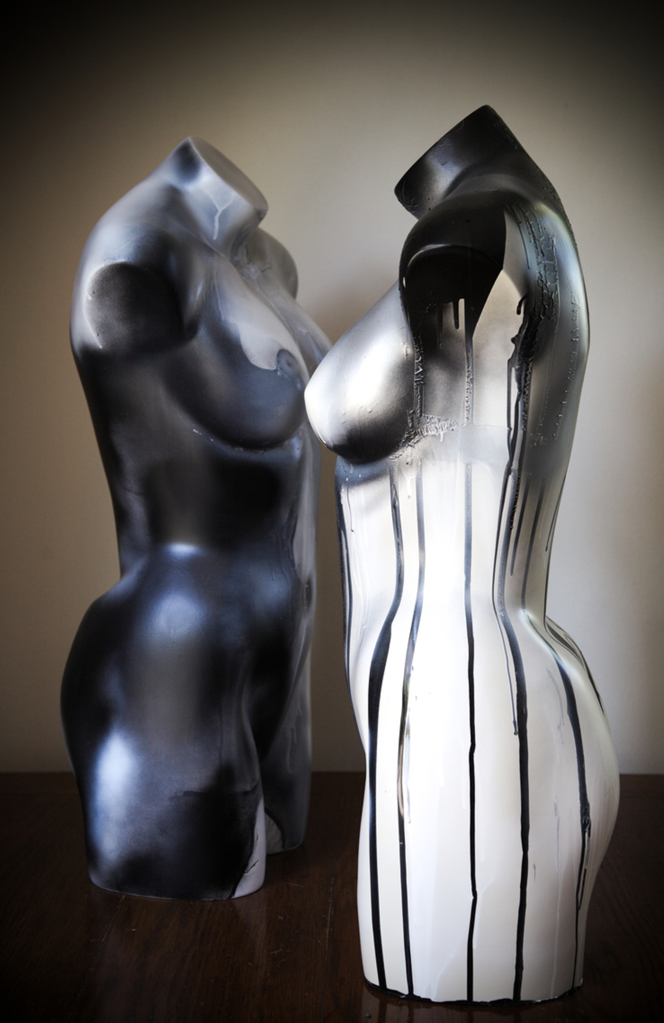 2 x torso gemaakt voor de expositie 'geboortegrond' in juni 2020 jl als aanvulling bij mijn zwart wit schilderijen.