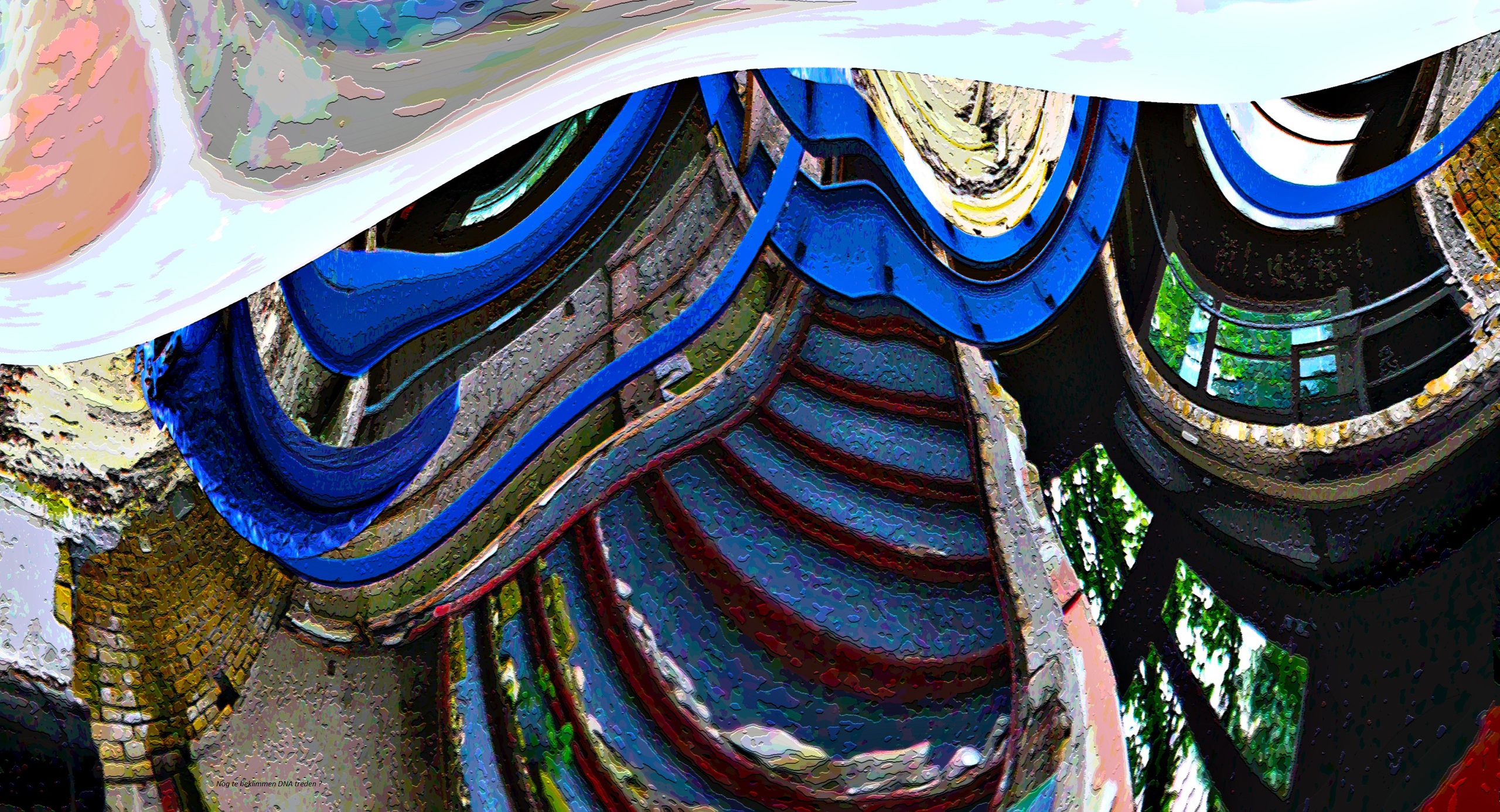 Huis Wit Blauw Groen Steen Trap Escher Stairway