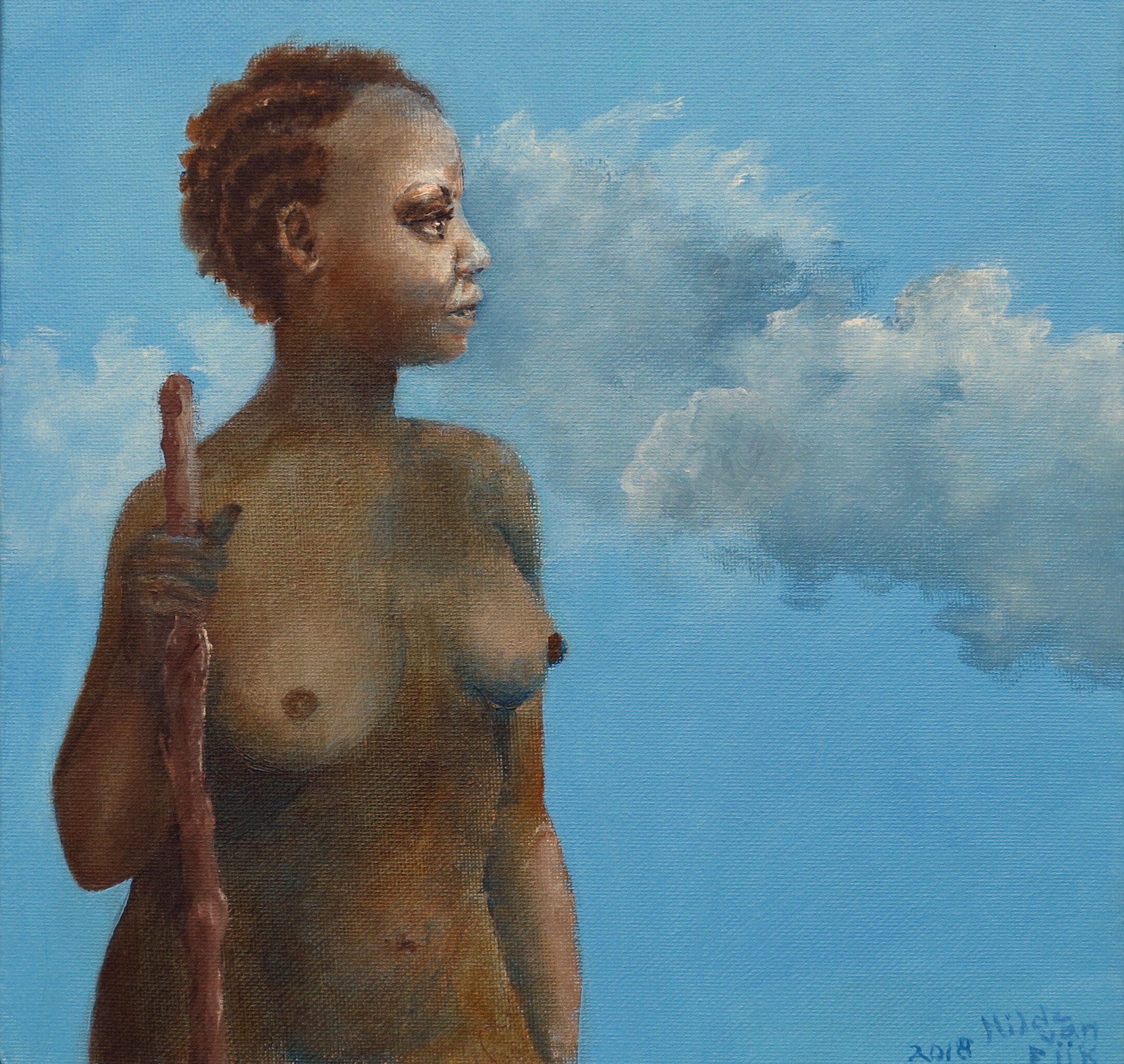 Mijn schilderijen gaan over menselijke emoties, innerlijke conflicten en stemmingen die in symbooltaal zijn teruggebracht tot kernachtige beelden. Deze zijn verstild, ruimtelijk en ietwat surreëel.Vaak wordt ook de lijst en het passe-partout erbij betrokken om maximaal uit te drukken wat ik wil zeggen. Soms gebruik ik gordijntjes of luikjes: als ze dichtgaan wordt het een ander schilderij. Poortjes, luikjes, drieluiken, maar ook “zesluiken” (voor- en achterkant van een drieluik beschilderd) kenmerken vaak het werk van Hilde van Eijk en versterken de zeggingskracht waardoor je a.h.w. een tweede werkelijkheid binnengaat. Er zijn hierbij verschillende mogelijkheden om het schilderij te etaleren, zodat steeds op een verrassende manier een ander schilderij ontstaat. Gladde oppervlakten va