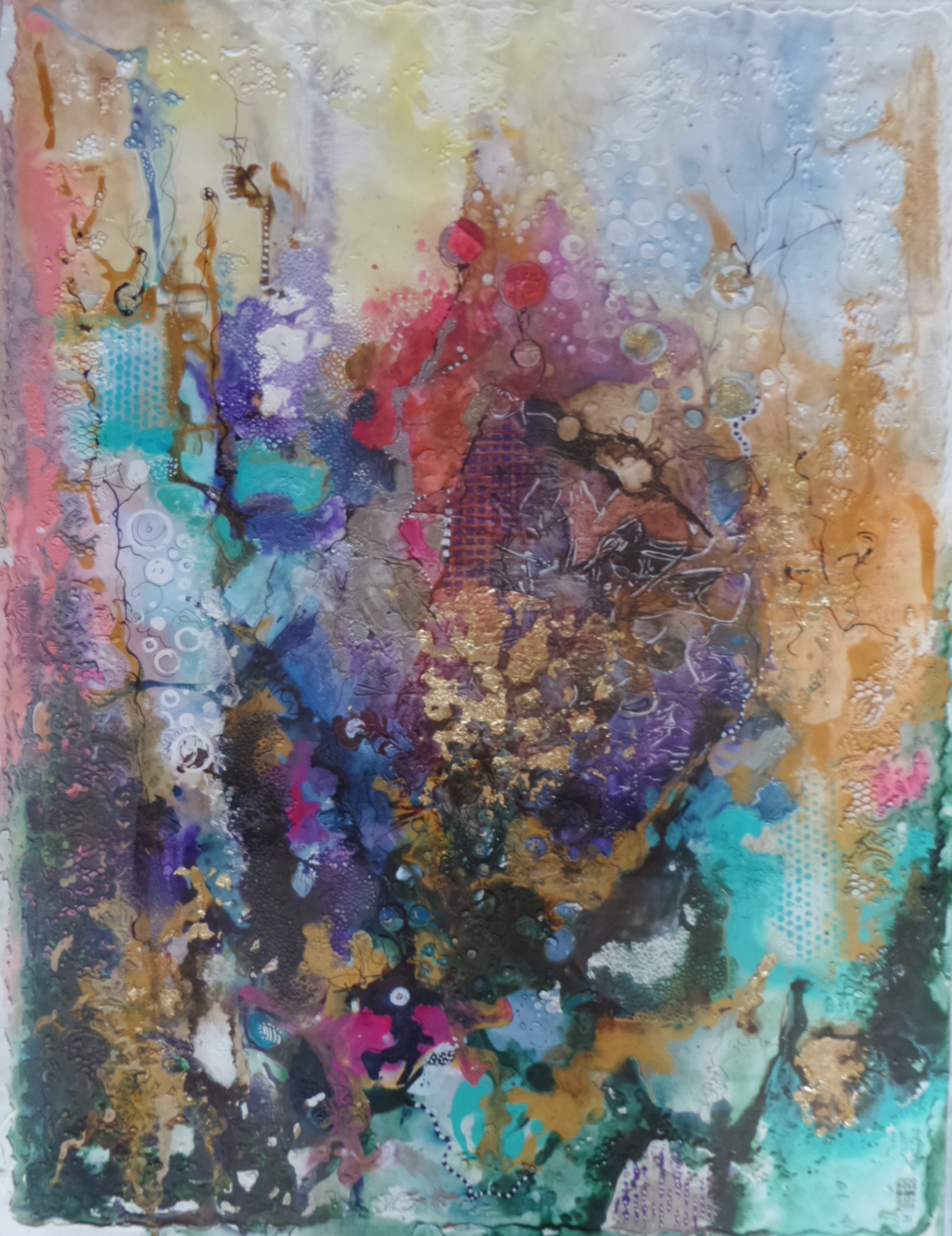 Mixed media op papier...met goudfolie