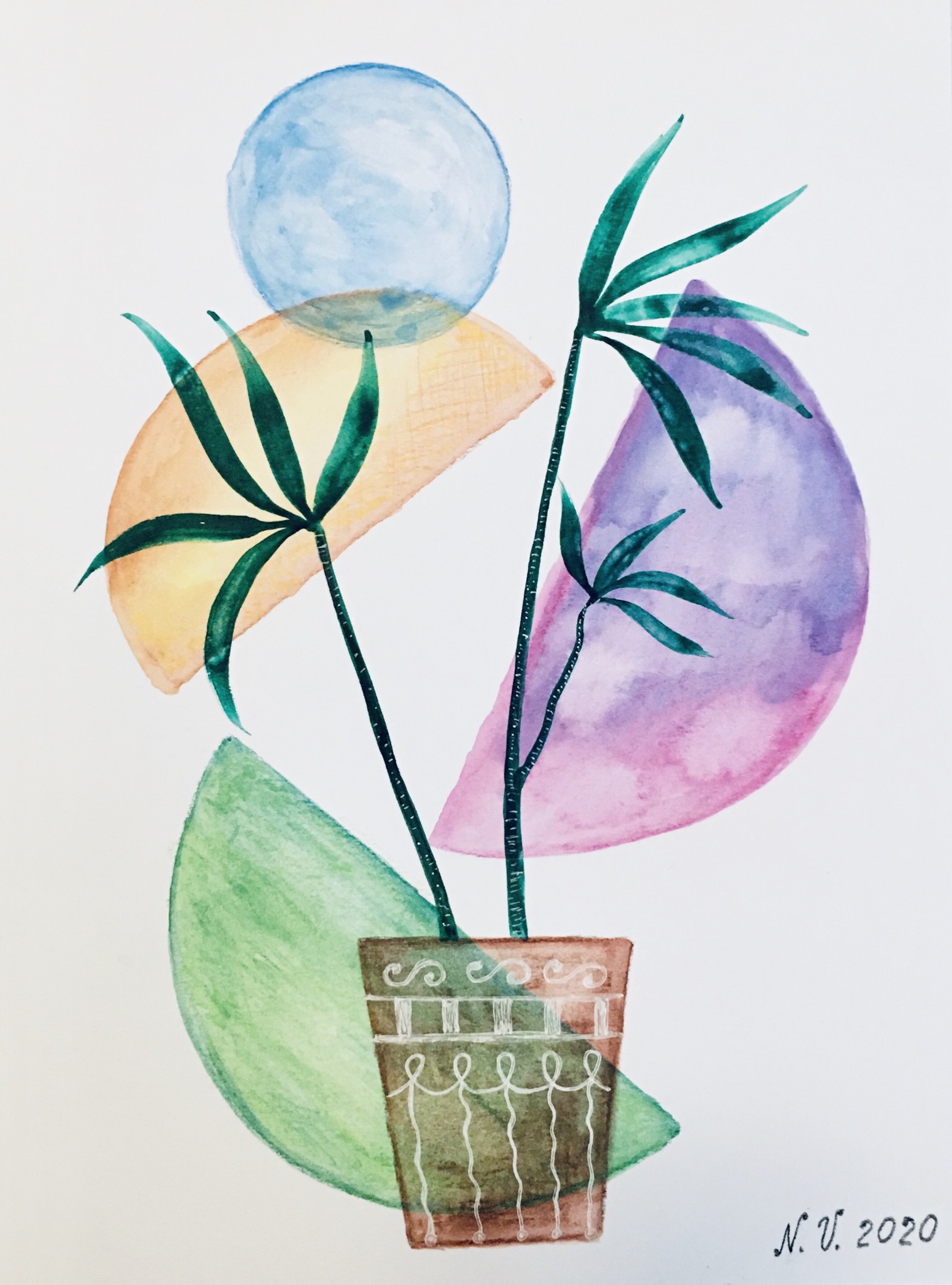 Pot Aquarel Natuur Plant Watercolor Zomer Summer Voronkova
