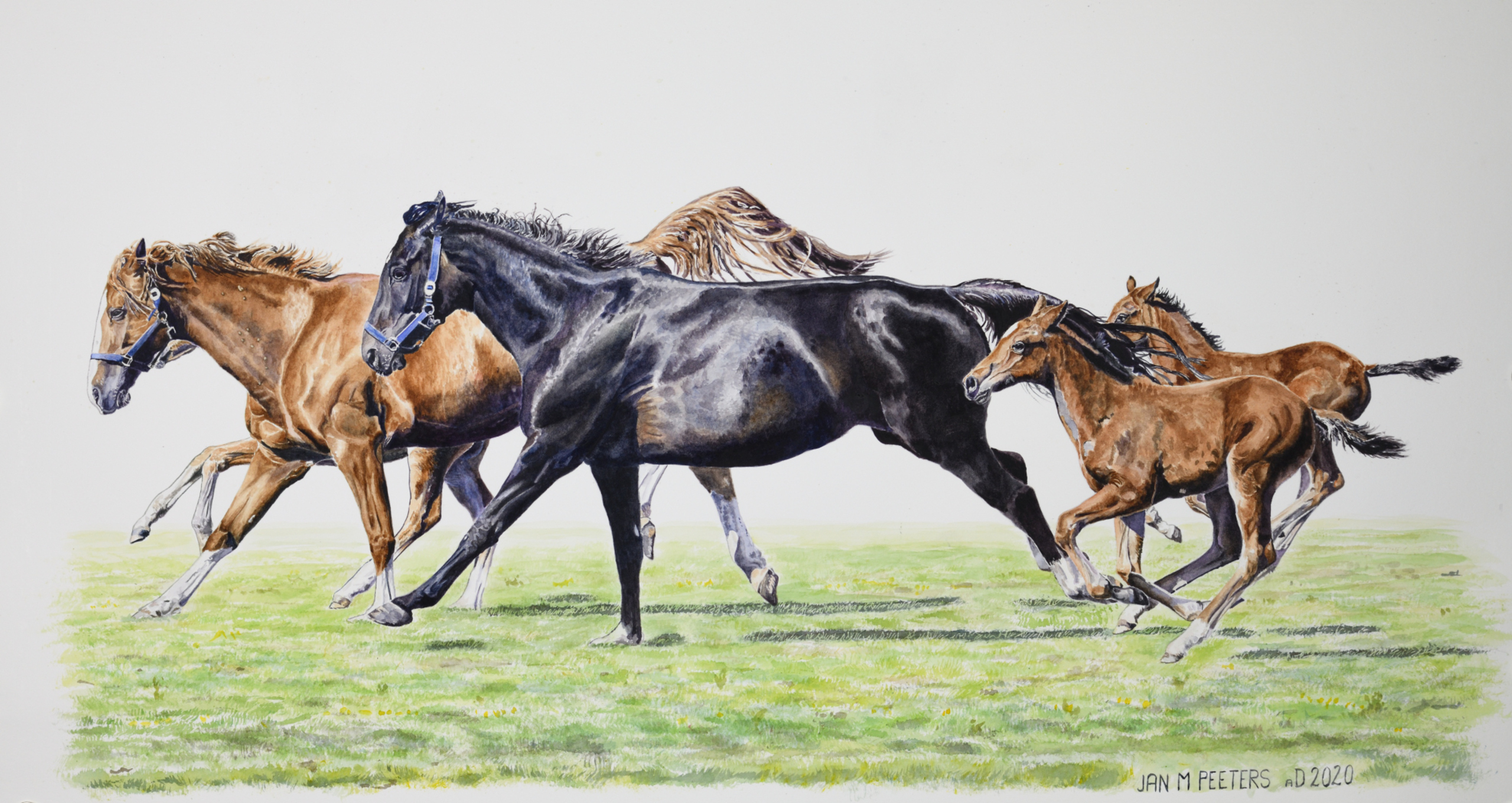 Het leek of beide merries samen besloten met hun veulens eens lekker voluit te gaan galopperen.