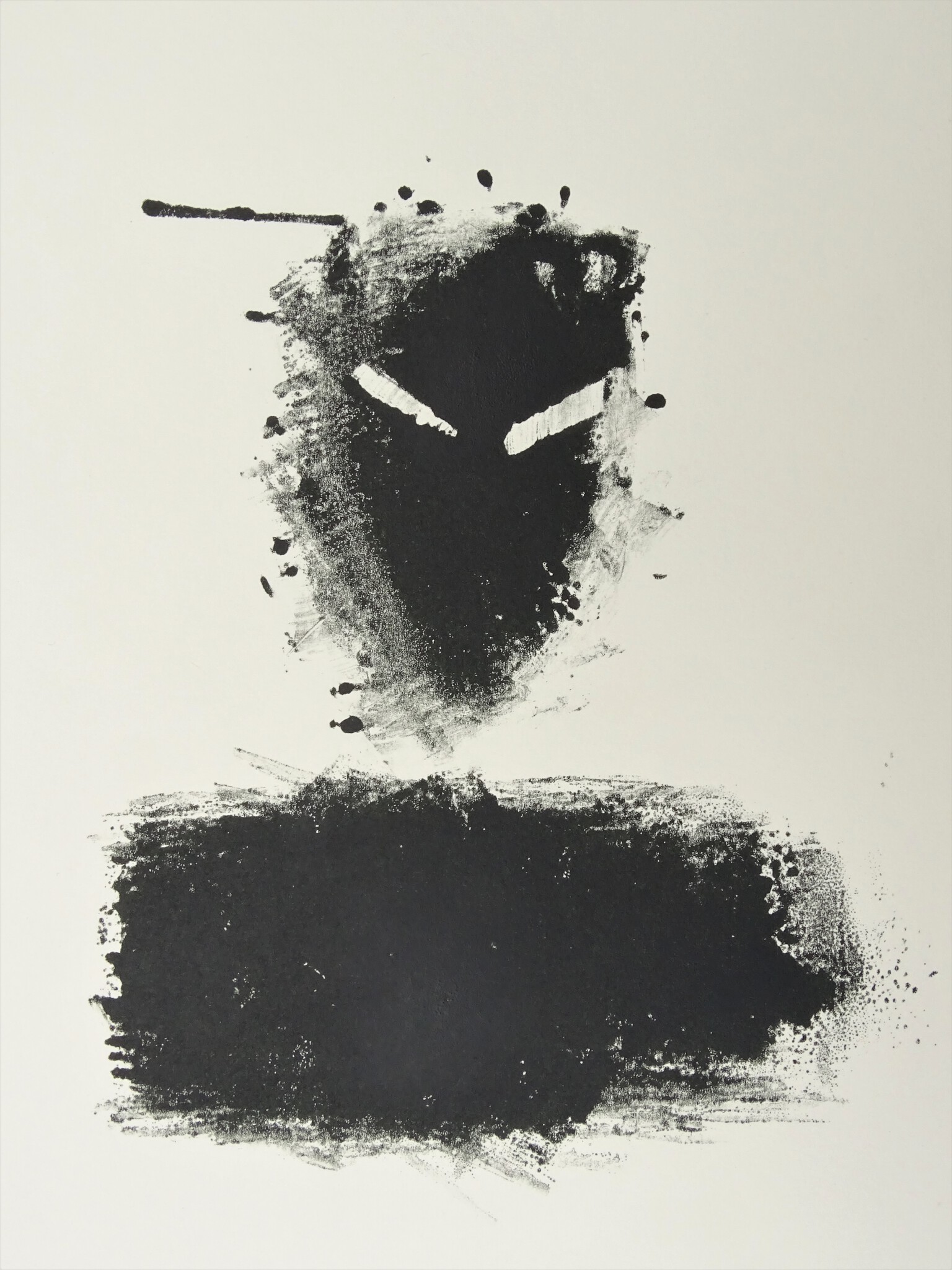 Is er een nergens / om naar toe te gaan / vliegend? monoprint, beeld 16x19 cm