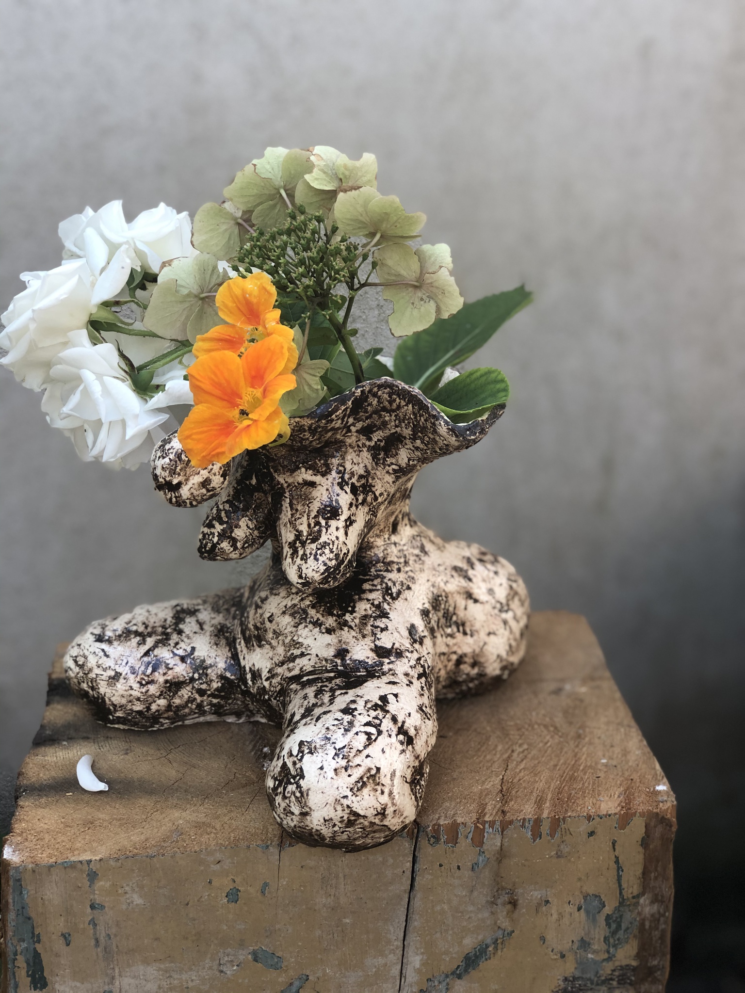 Originele vaas van bukkend naakt, prachtig op salontafel voor klein boeket. Staat uiteraard ook zonder bloemen prachtig.