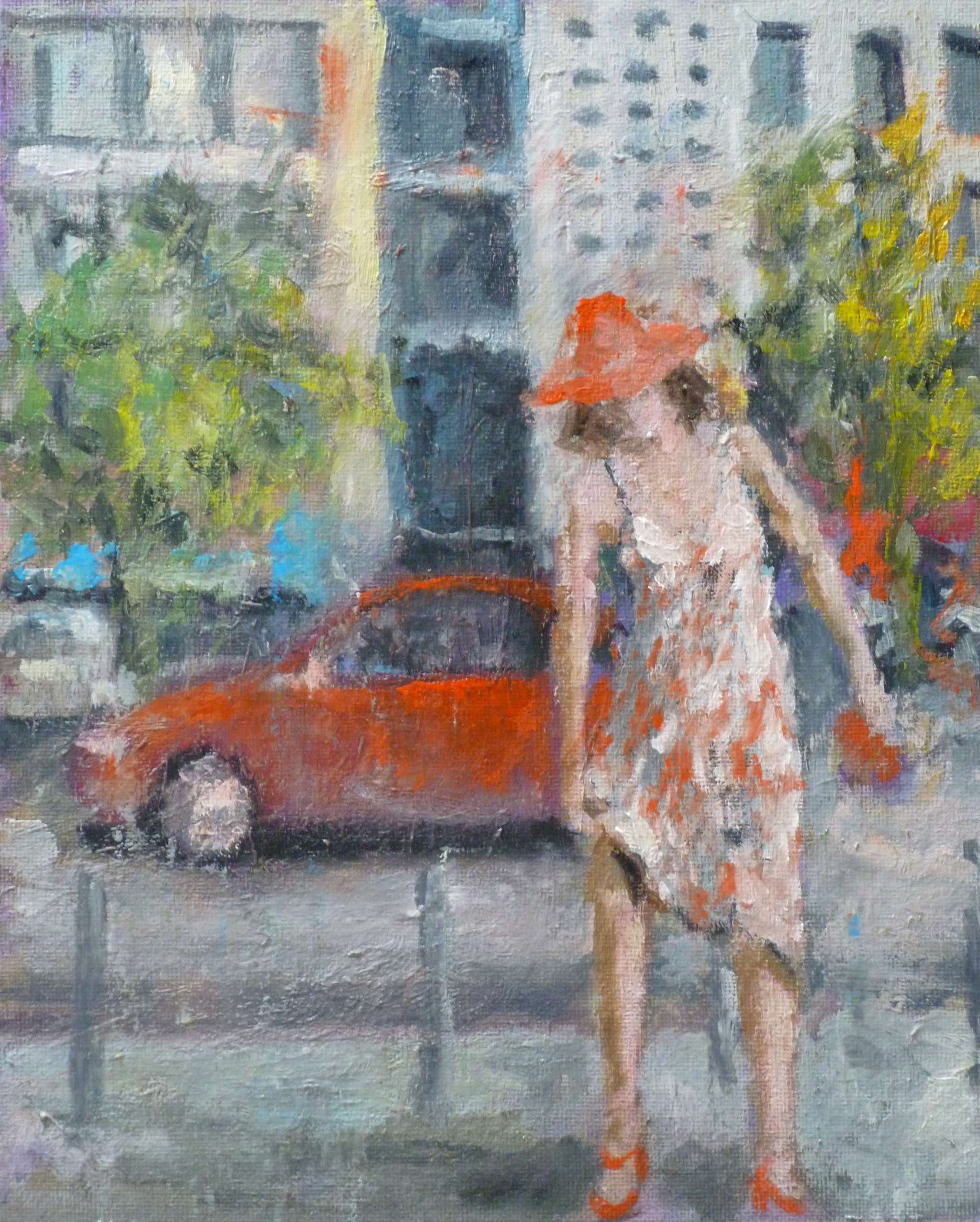 Figuratief Vrouw Kleurrijk Auto Stadsgezicht Hedendaags Bart Bebouwing Hoedje Buijsen