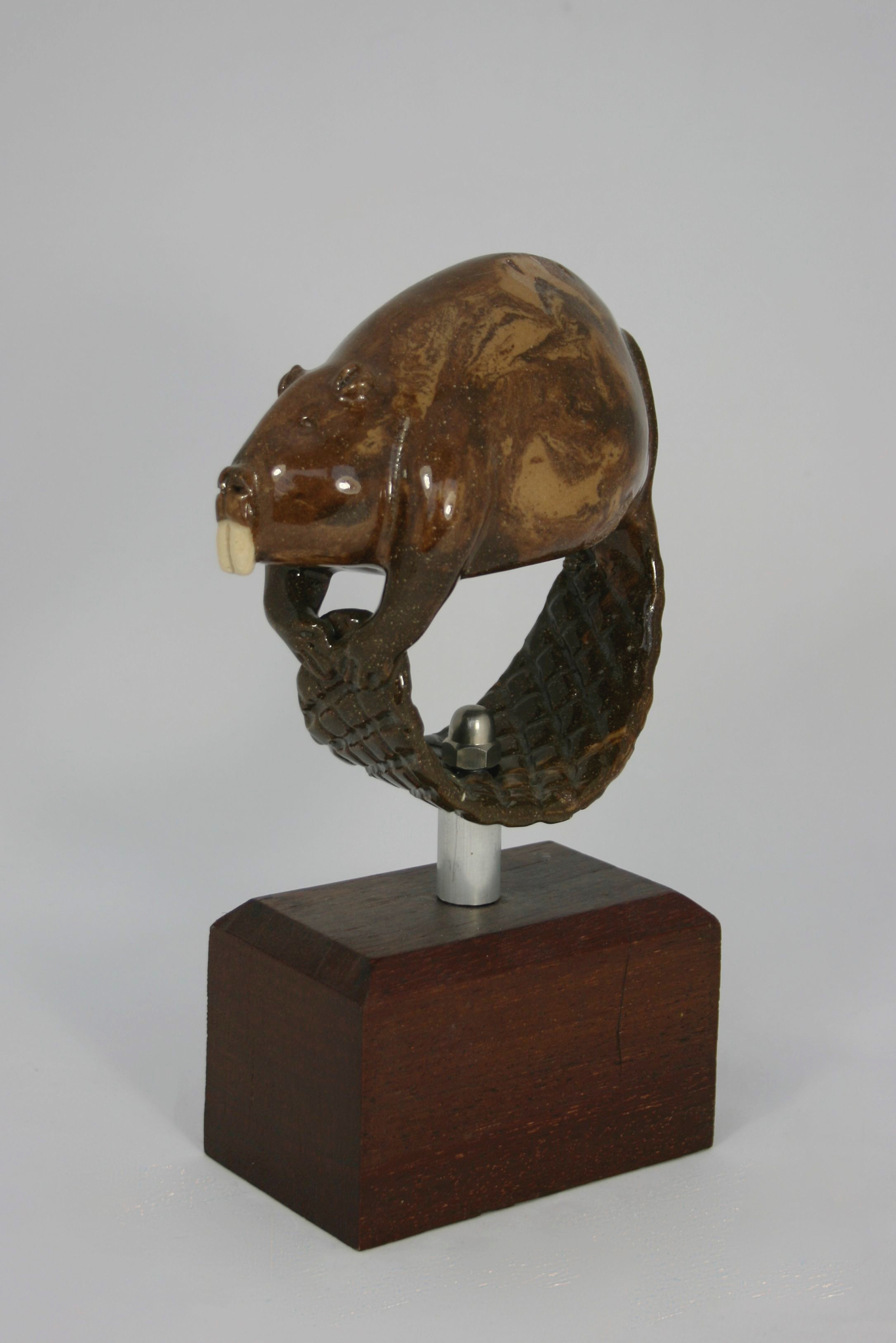 Deze bever staat op een hardhouten blok en is op 1180˚ C. gebakken.