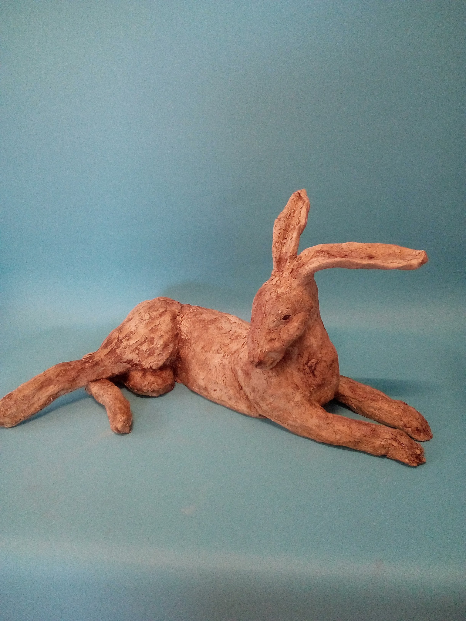 Beeld Klei 3 Buiten Liggend Keramiek Wild Dimensionaal Haas Vorstbestendig