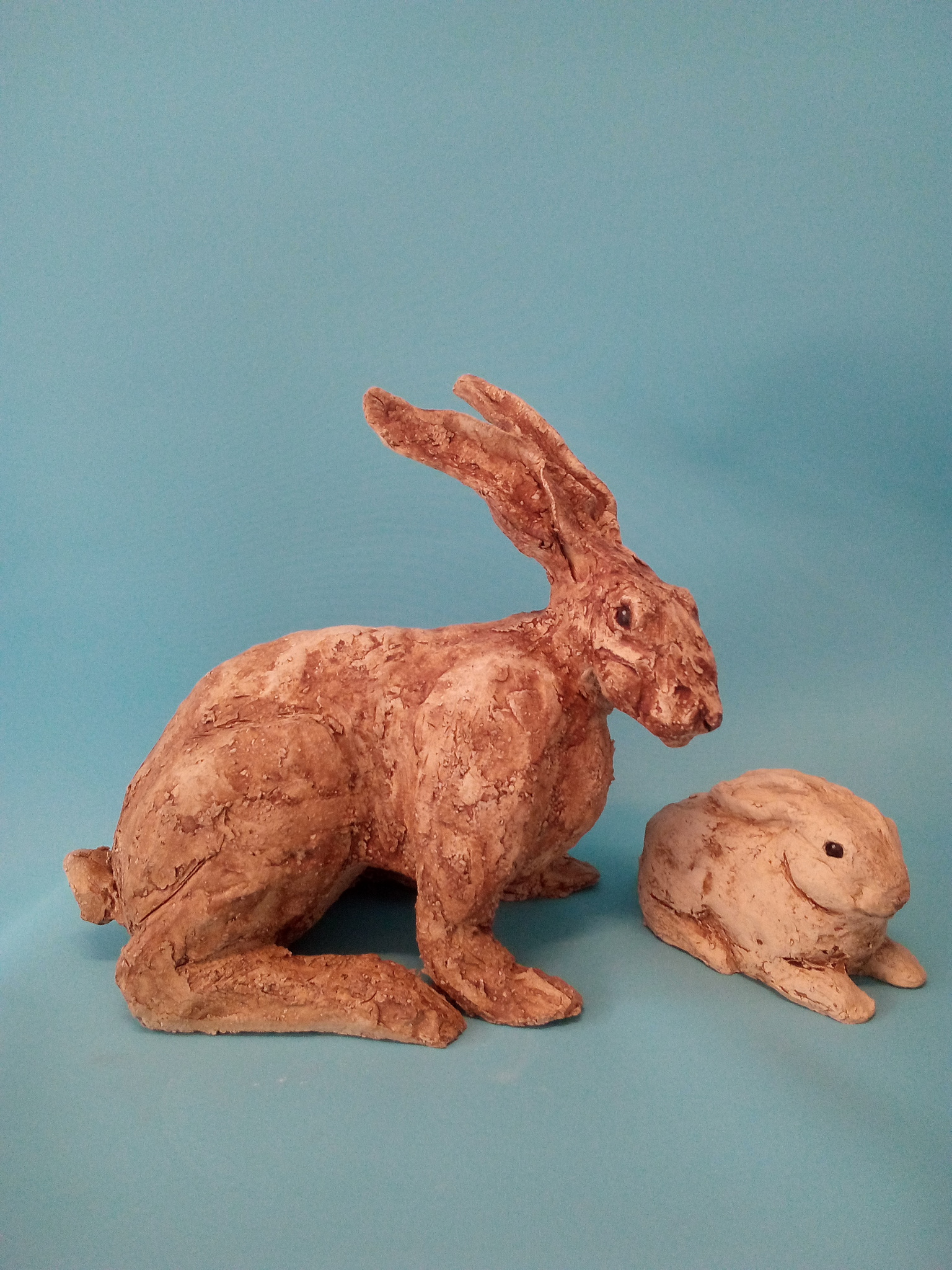 Beeld Klei 3 Jonge Lente Voorjaar Dimensionaal Haas Vorstbestendig Moerhaas