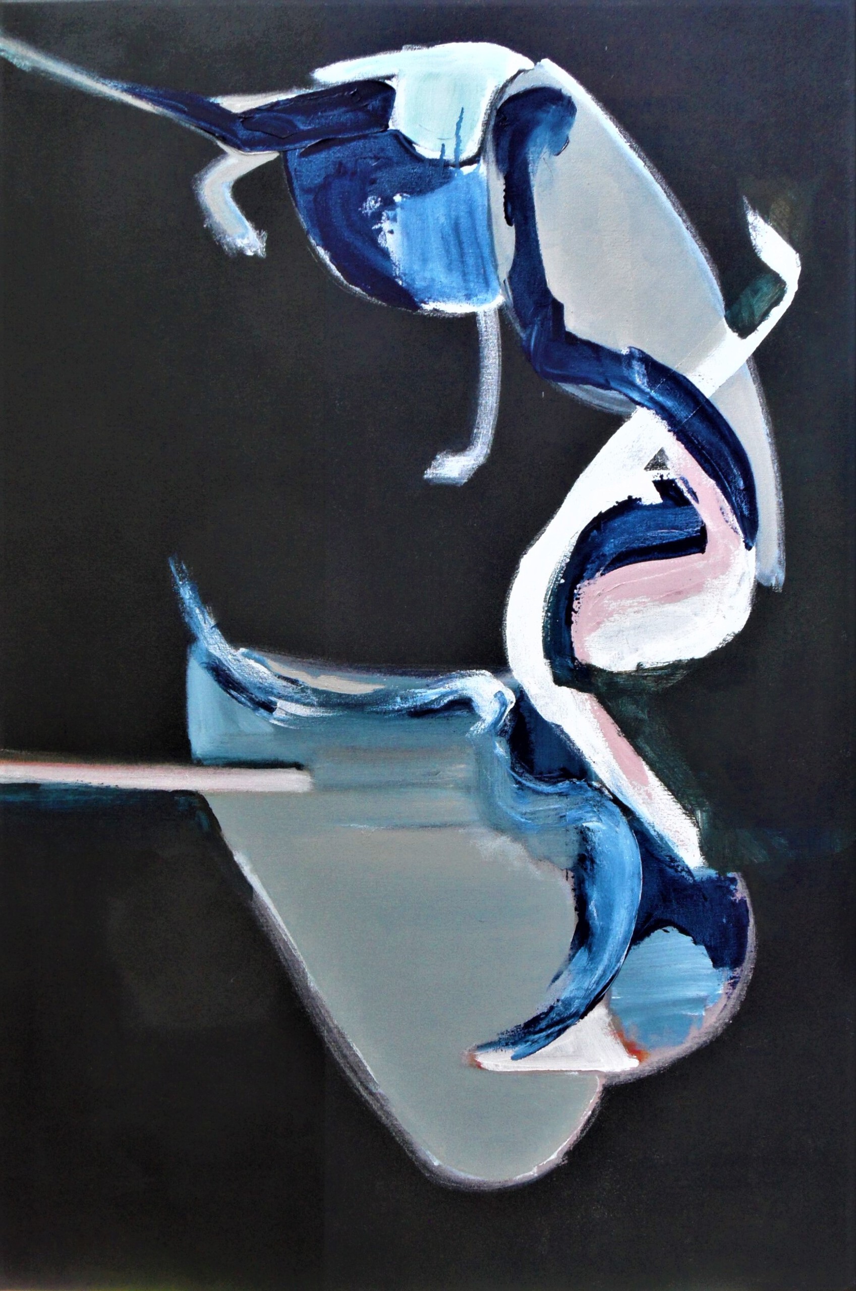 Abstract Vorm Kleur Natuur Vogels Lyrisch Expressief Acrylverf Olieverf Zwart Blauw Wit Roze Kaki Organisch