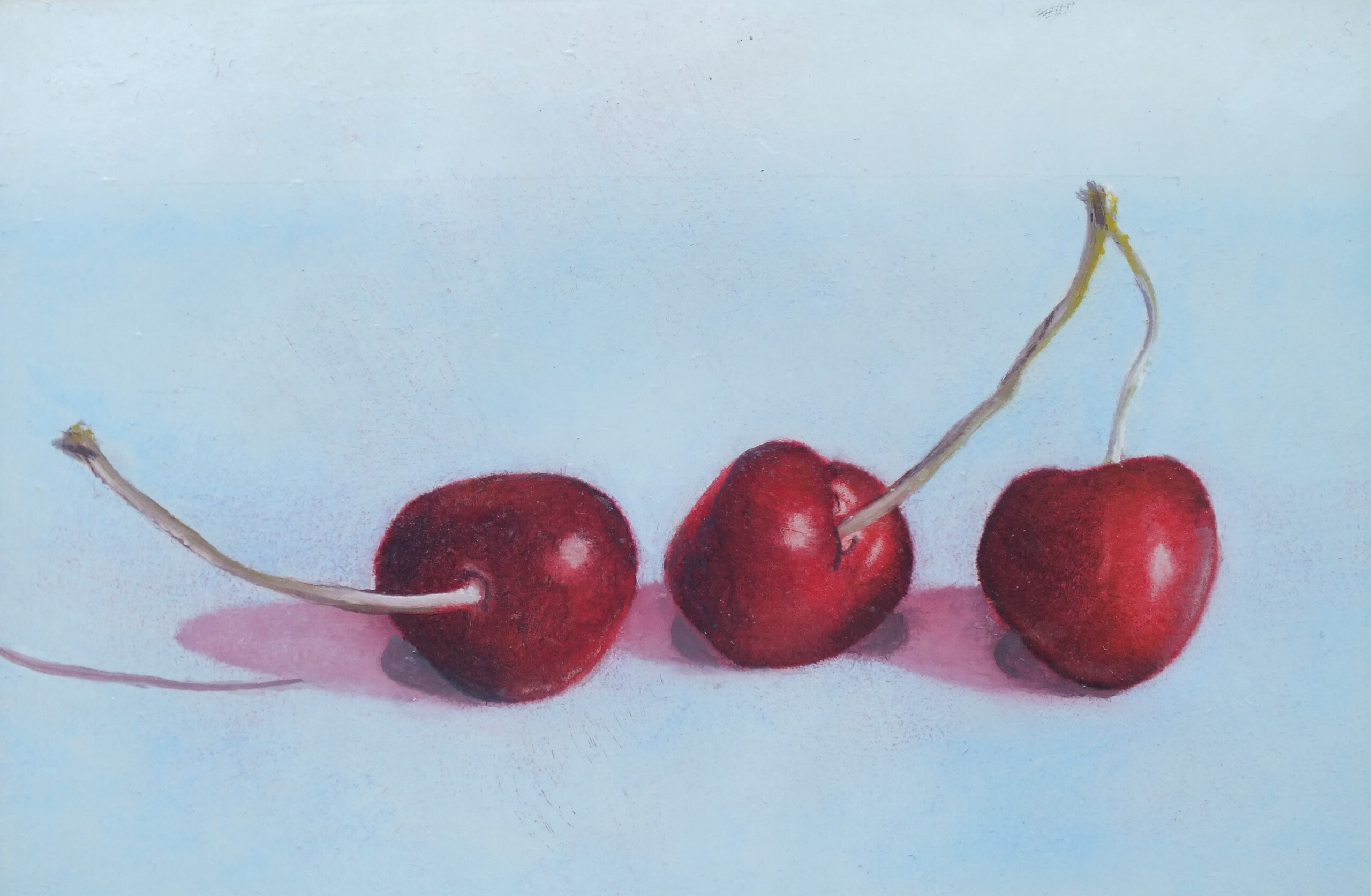 Kersen in licht blauw.