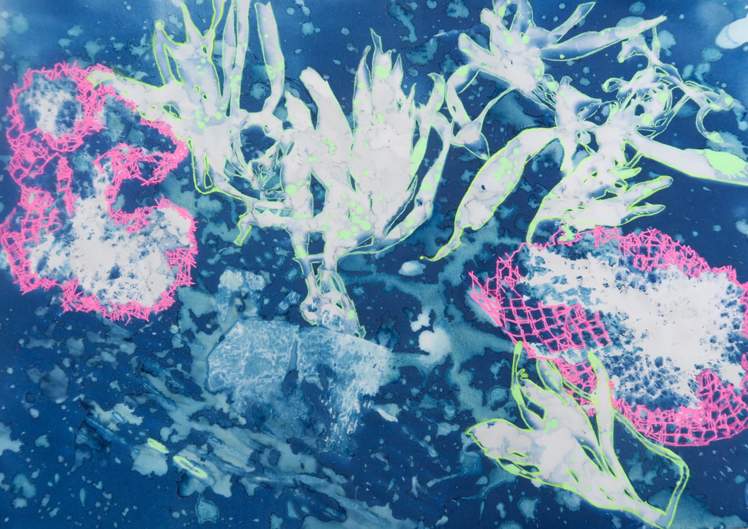 Blauw Groen Roos Koraal Stift Soep Plastic Zeebodem Blauwdruk