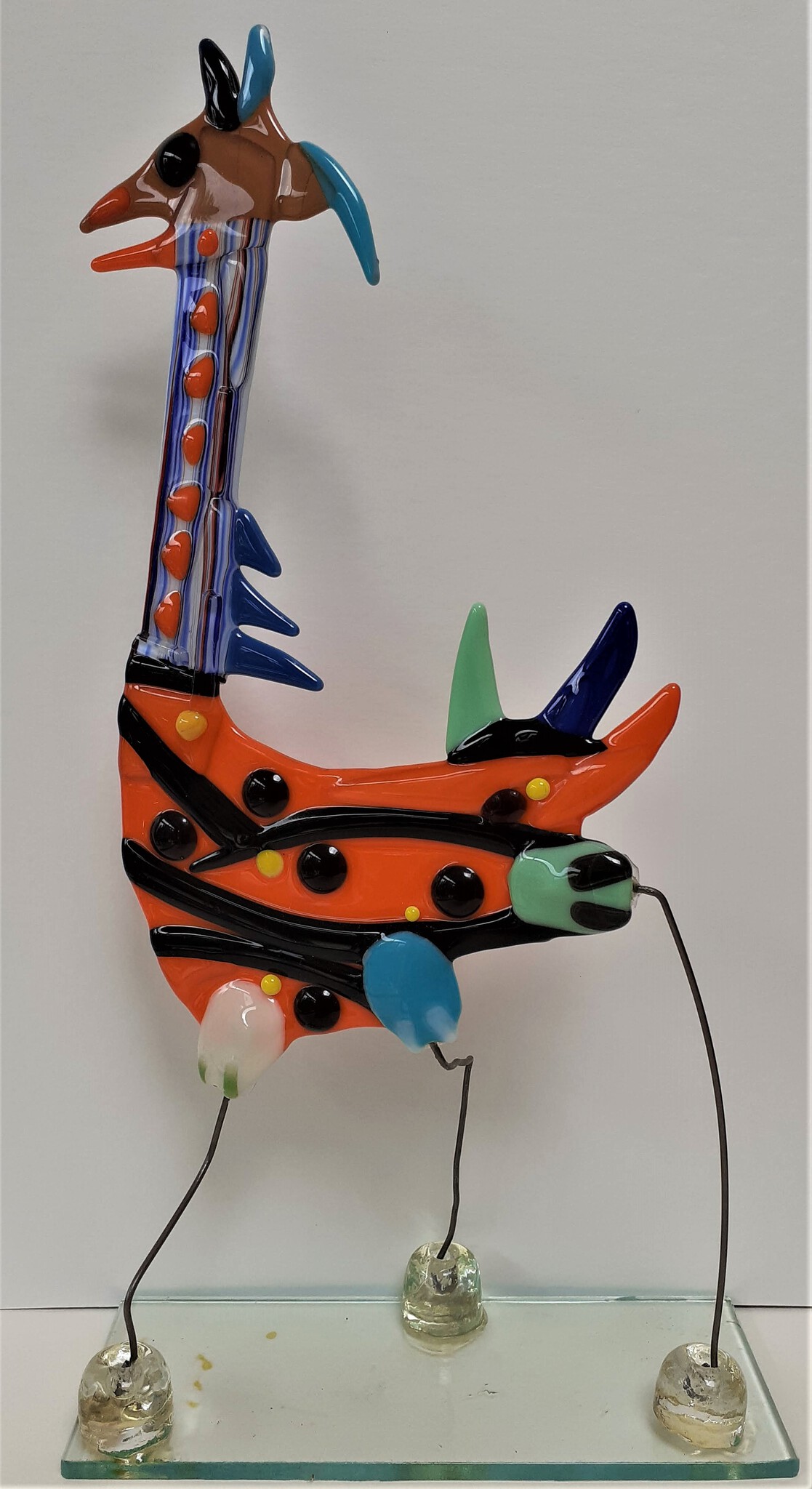 Het iets grotere broertje van allesdier 1, en samen een hele mooie combinatie. (Dan € 5,00 goedkoper) Het lijkt alsof de fantasiedieren communiceren. Kleurrijk, speels, fantasievol en om vrolijk van te worden. De 3 poten staan stevig op een glasplaatje van 8 x 21