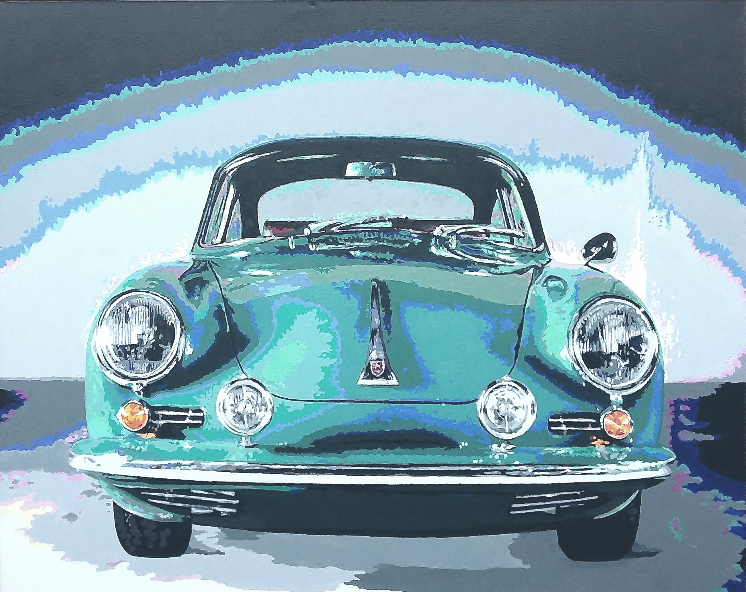 Kleurrijk portret van klassieke Porsche