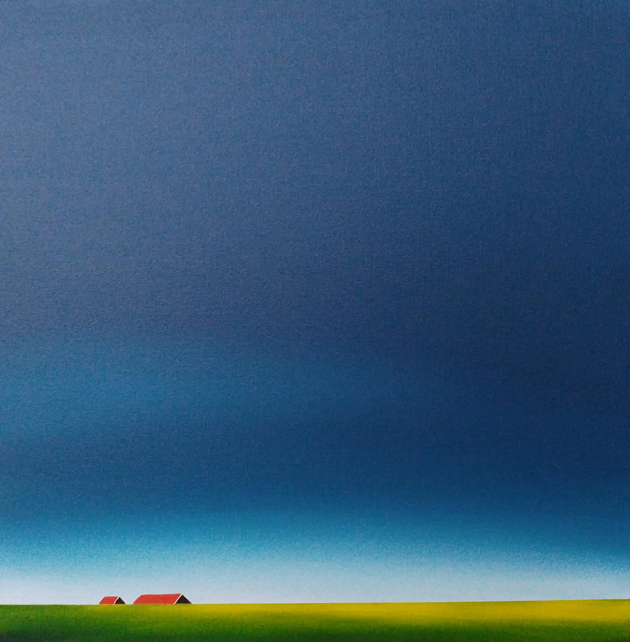 Schilderij Landschap Rode Van Dutch Painting Polder Lucht Stilte Zeeland Boerderij Minimalisme Daken Skyline Nelly Nieuwenhuijzen