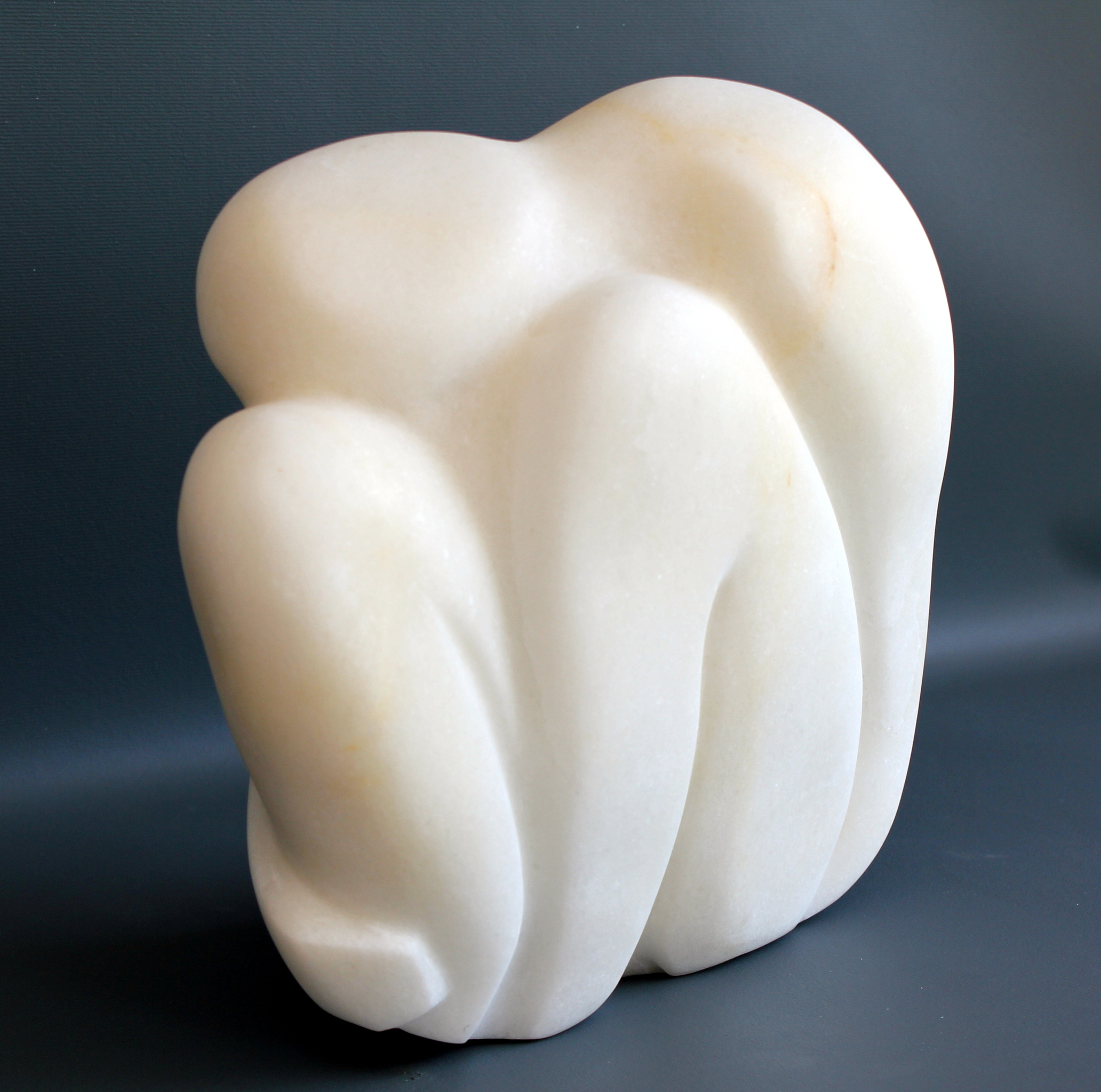 Een vrouwelijke wereld uit steen geboren. Mijn beelden dragen “het eeuwig vrouwelijke” in zich. Zij vertegenwoordigen mijn communicatie met de steen, de lijnen en structuren die zijn ontstaan door de tijden en de steen haar eigen taal geeft. Met name het samengaan van mijn innerlijke taal en die van de steen is één van de boeiende aspecten van het werken met steen: het bevrijden van een nieuwe wereld uit het eens zo vormeloze.