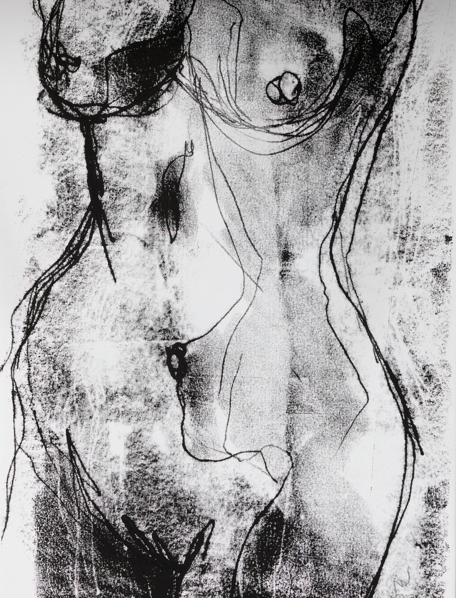 Vrouw Naakt Lichaam Zwart/wit Tekening Inkt Druk Monotype