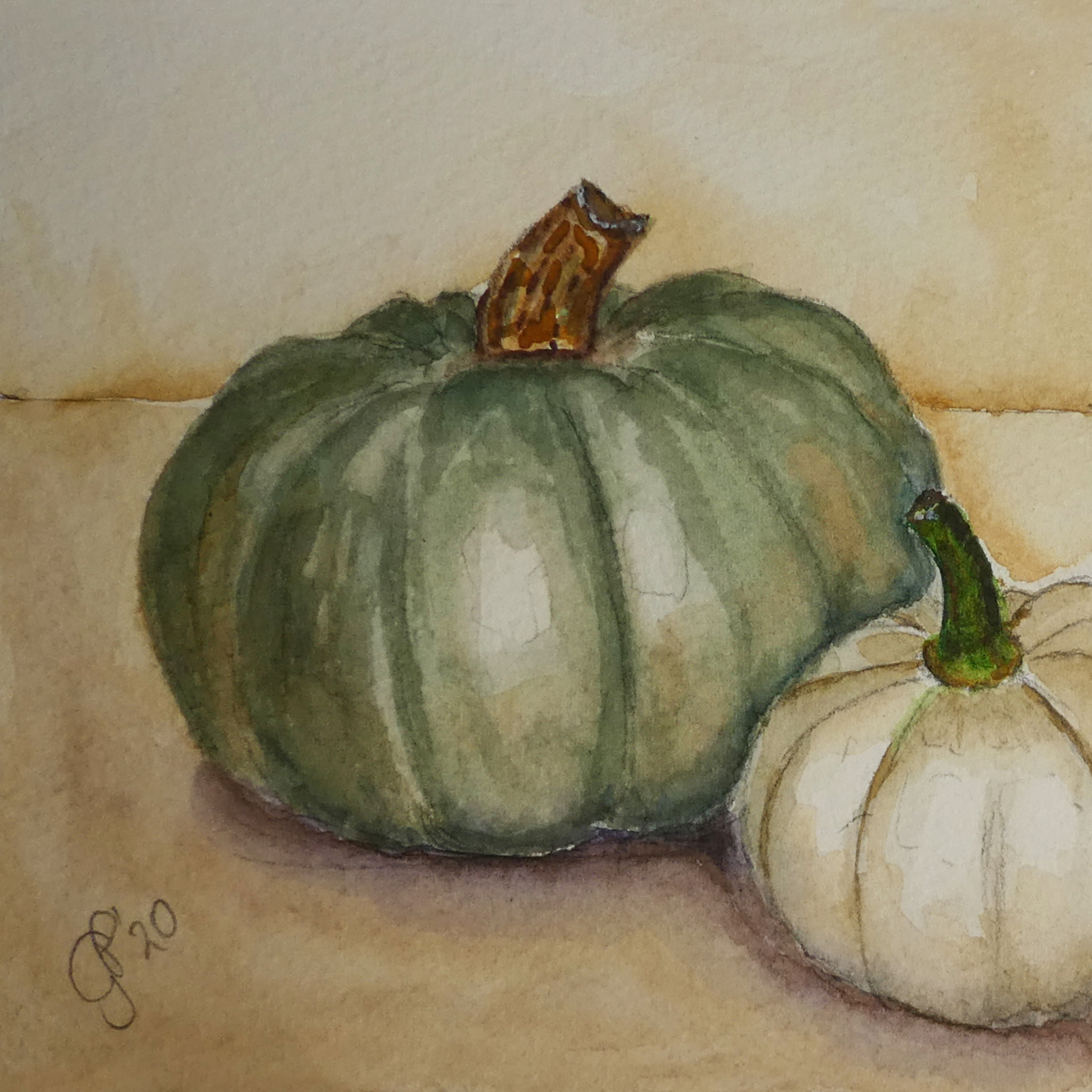 Pompoen Eten Natuur Waterverf Watercolor Aquarel Groen Wit