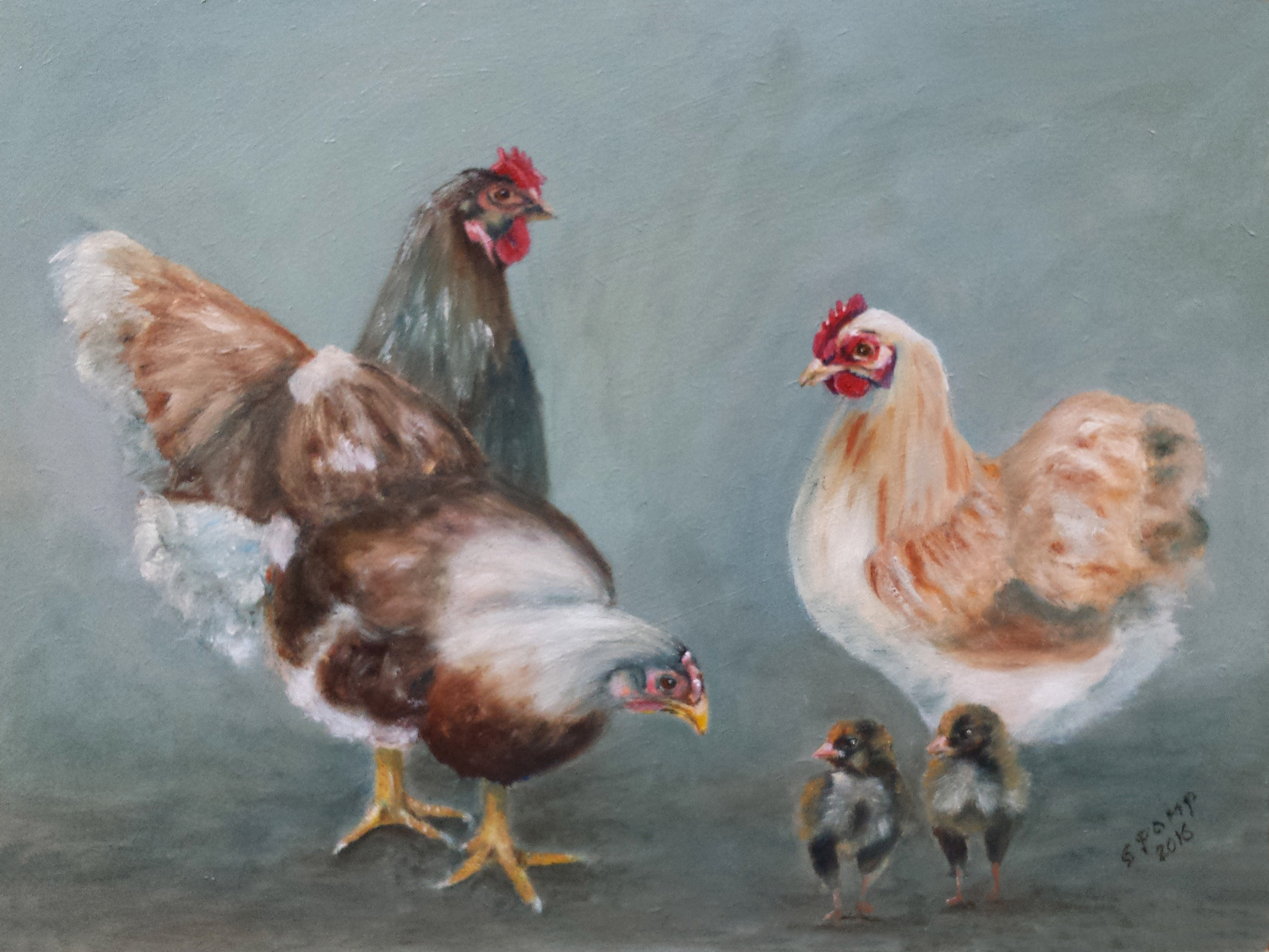 Kip Haan Kuiken Kippen Dieren Dier Olieverf Alkyd Natuur Portret